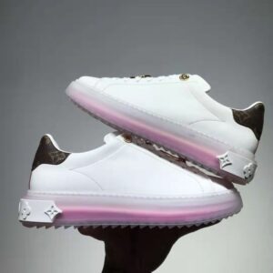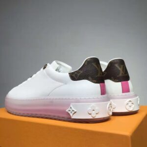 This version of the Time Out sneaker comes in soft, white calf leather with Monogram-canvas trim at the back.