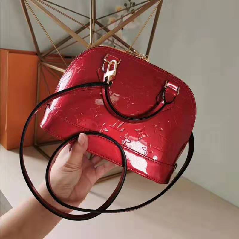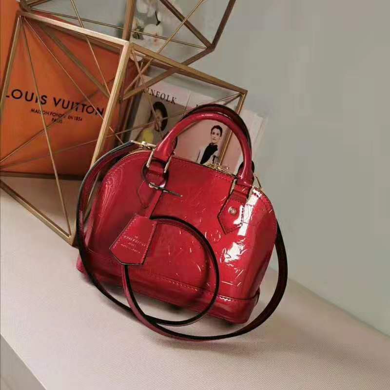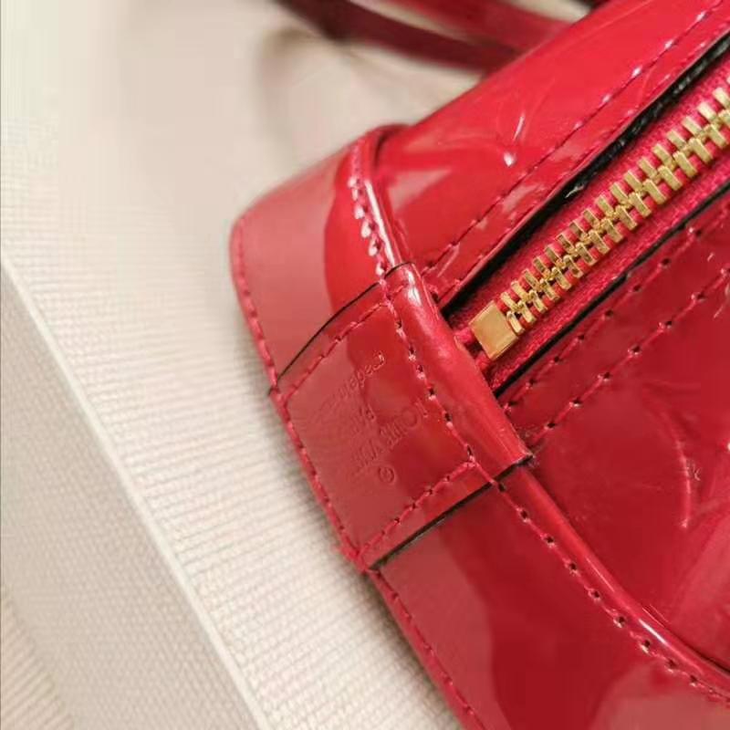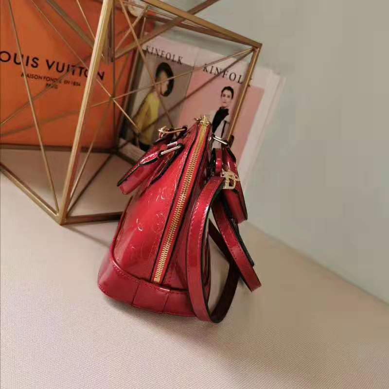 This miniature version in gleaming Monogram Vernis easily holds keys, wallet, smartphone and lipstick.