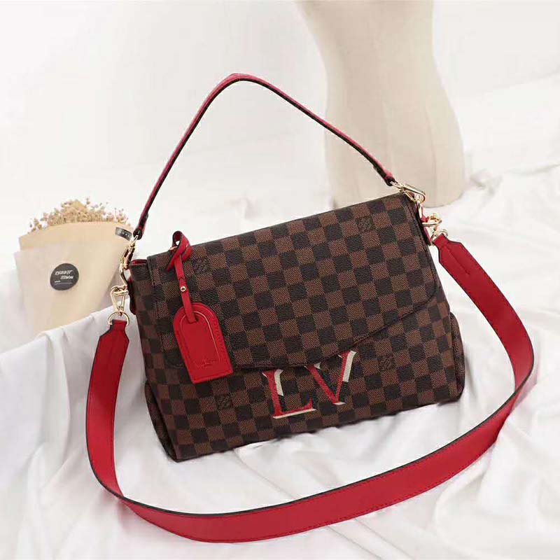 Louis Vuitton’s new Beaubourg bag in Damier Ebene canvas combines a casual-chic soft feel with striking leather trim in timeless black or eye-catching scarlet.