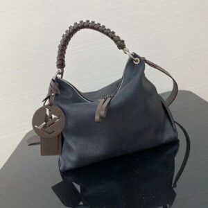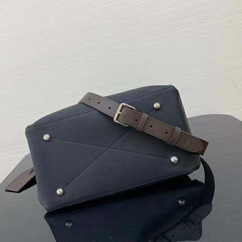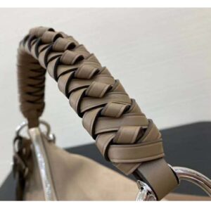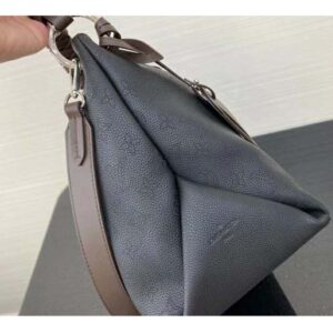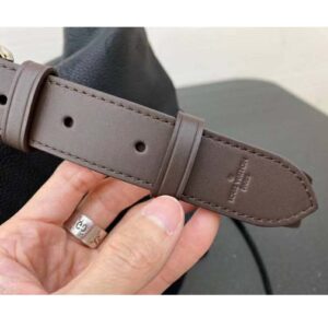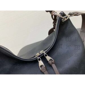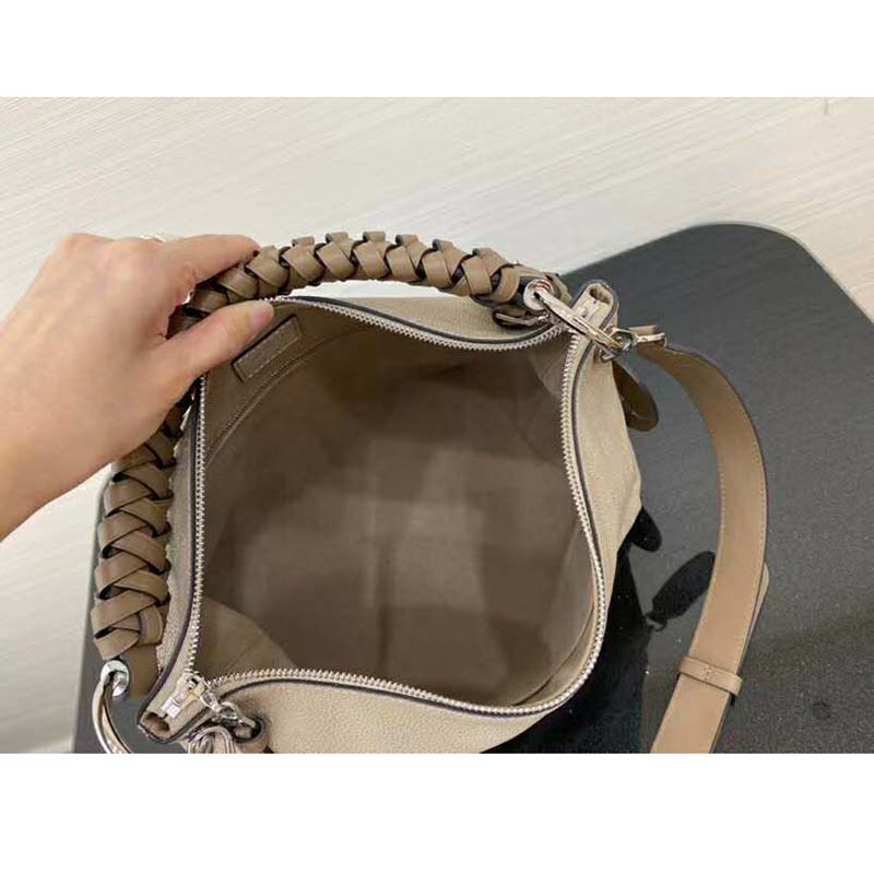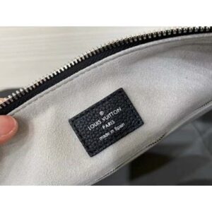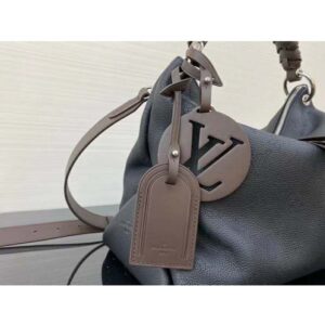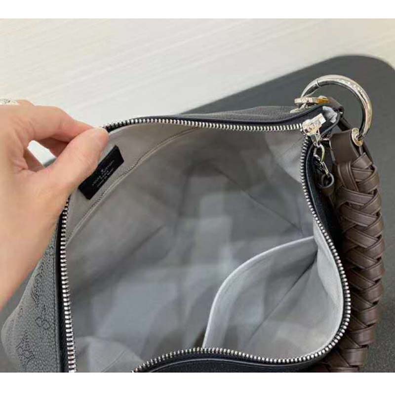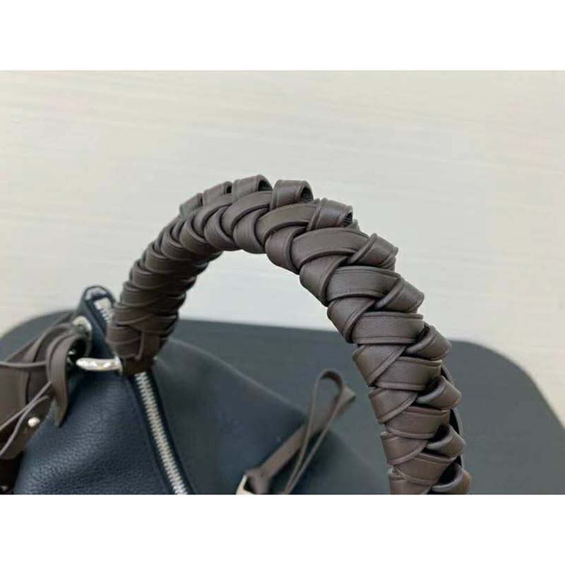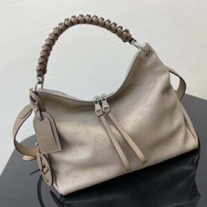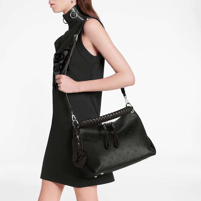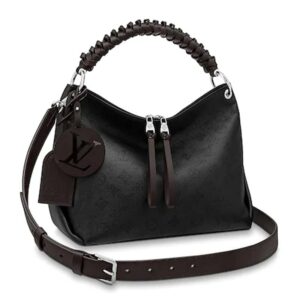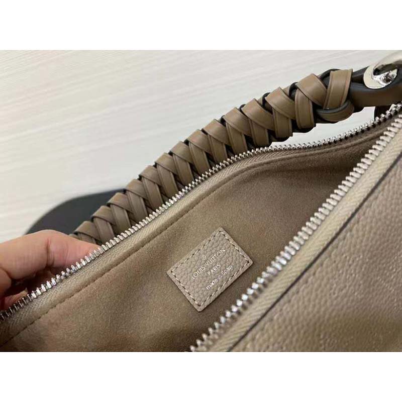 It boasts a stylishly braided-leather top handle, with hand-painted edge-dyeing along the braids. The leather zip pulls and large LV charm sign the bag.