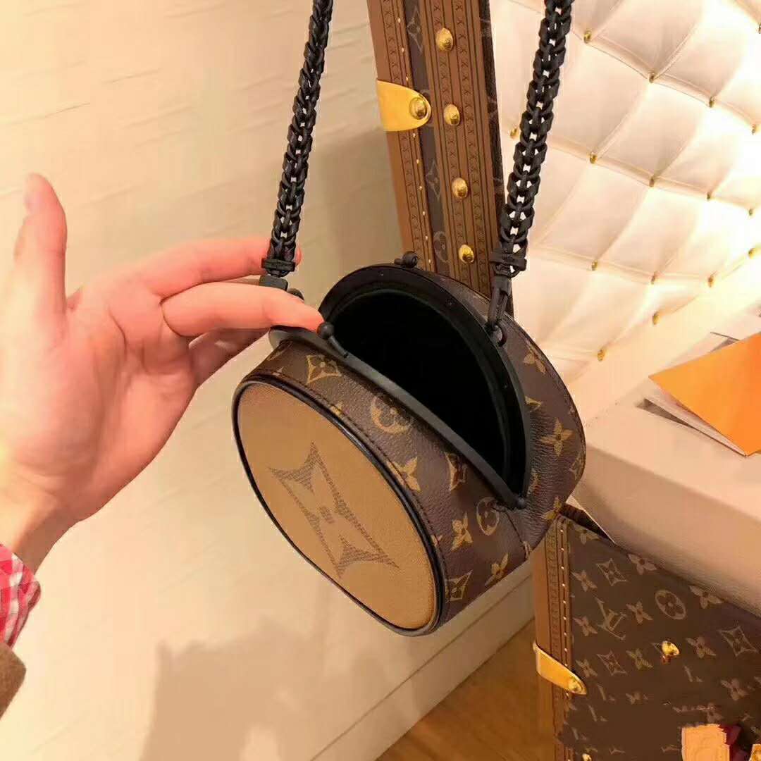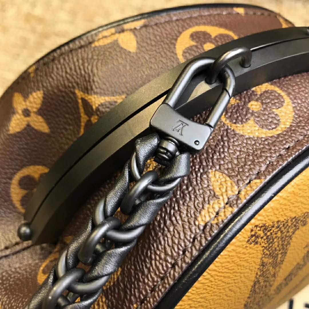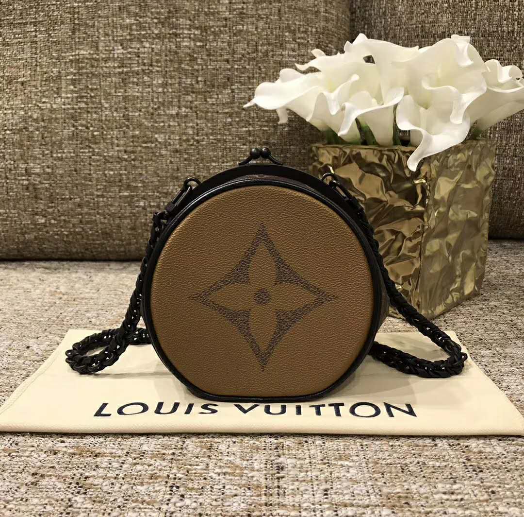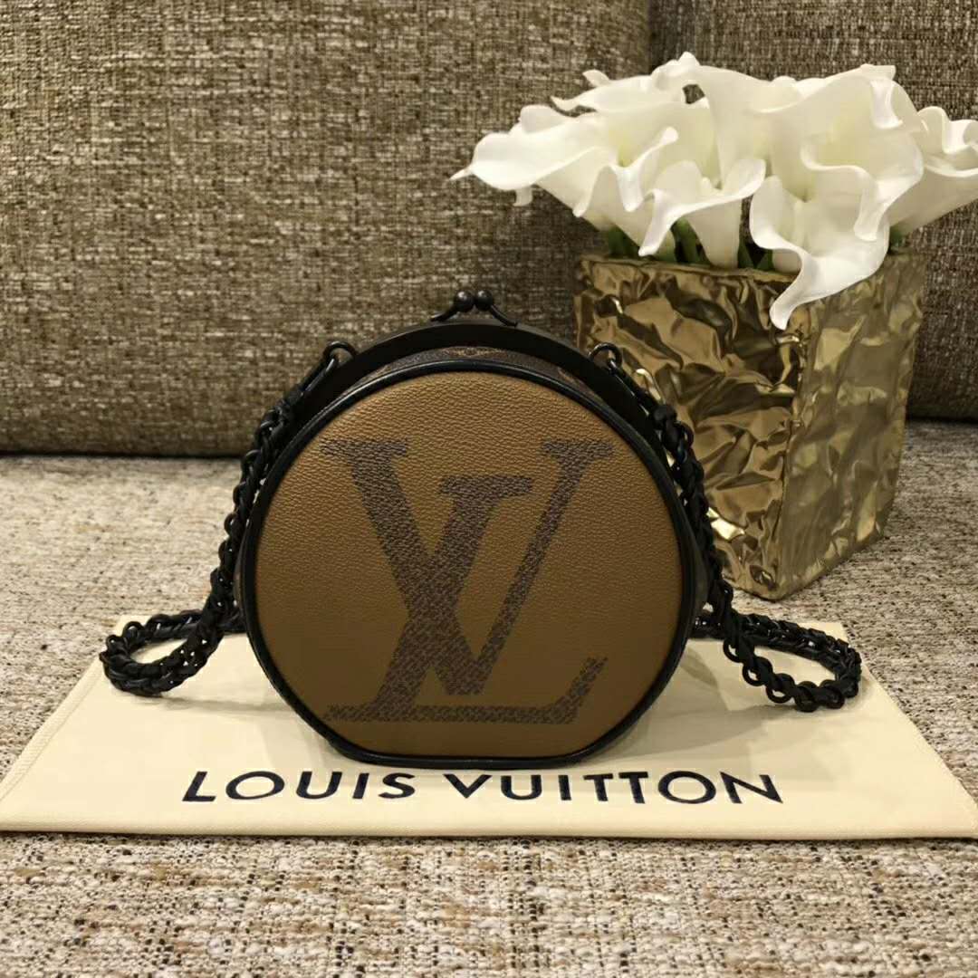 Inspired by vintage purses, it combines Louis Vuitton’s signature Giant Monogram Reverse canvas with a finely crafted closing system.