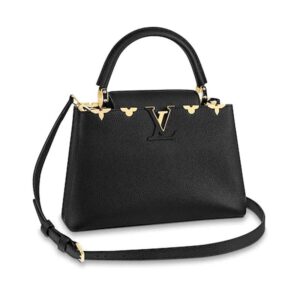 This season the House tells a new Capucines story. Embellished with a delicate frieze of metallic Monogram flowers, the emblematic bag is more feminine than ever.