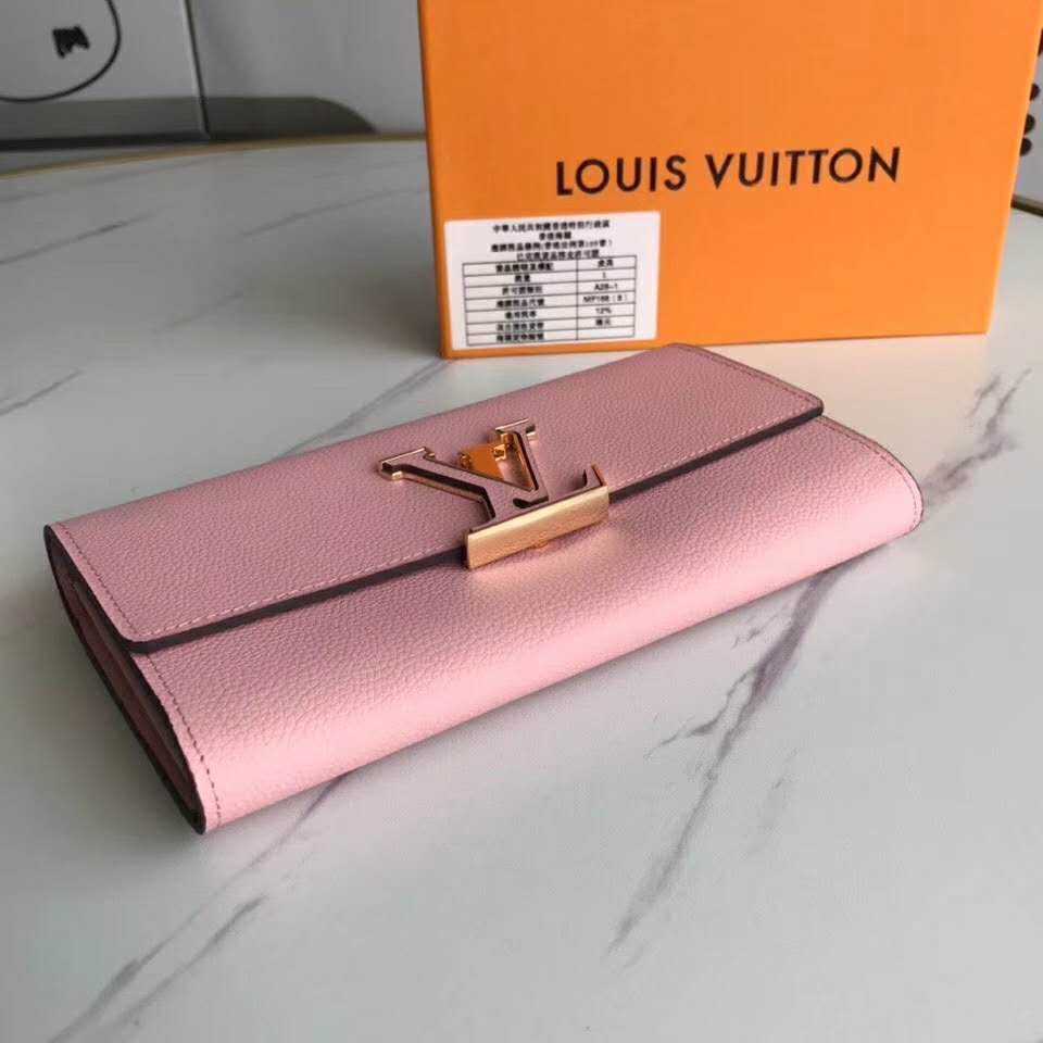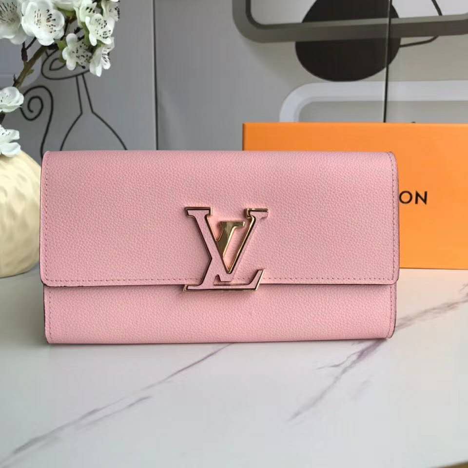 Louis Vuitton LV Women Capucines Wallet in Taurillon Leather Pink