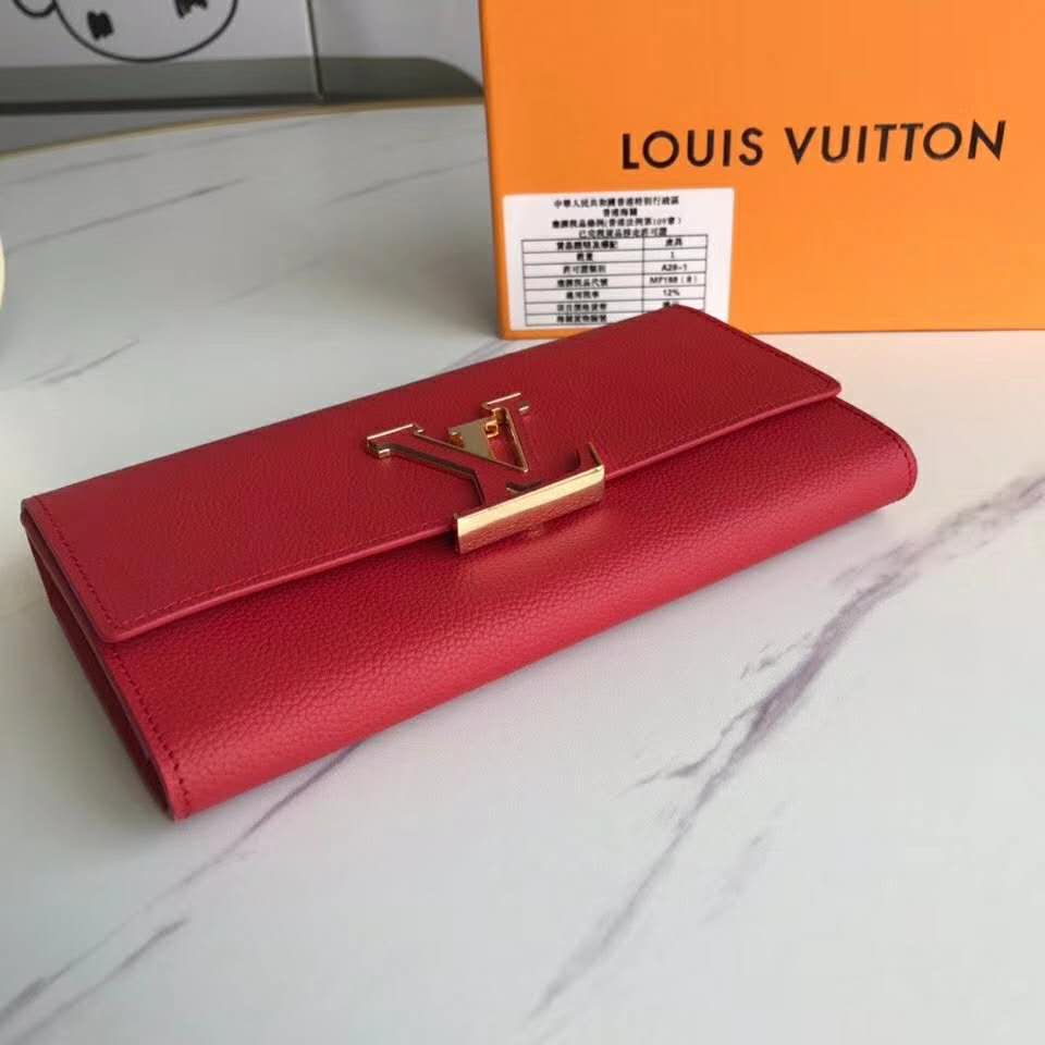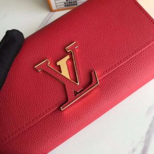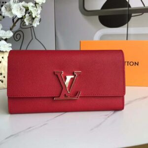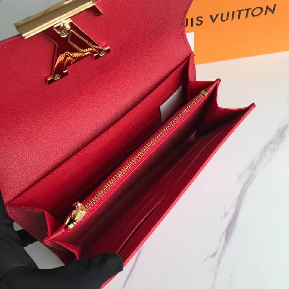 Louis Vuitton LV Women Capucines Wallet in Taurillon Leather Red