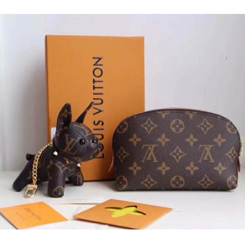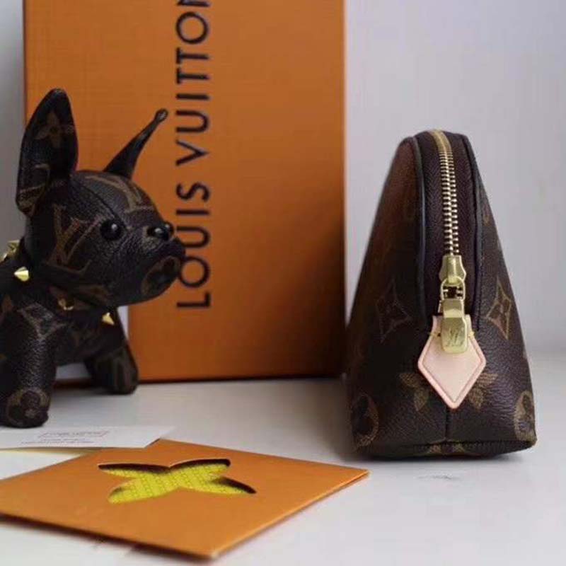 This compact cosmetic pouch in Monogram canvas slips easily into a handbag or suitcase.