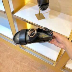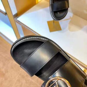 It features wide straps in black glazed calf leather and a cushioned anatomic footbed for exceptional comfort.