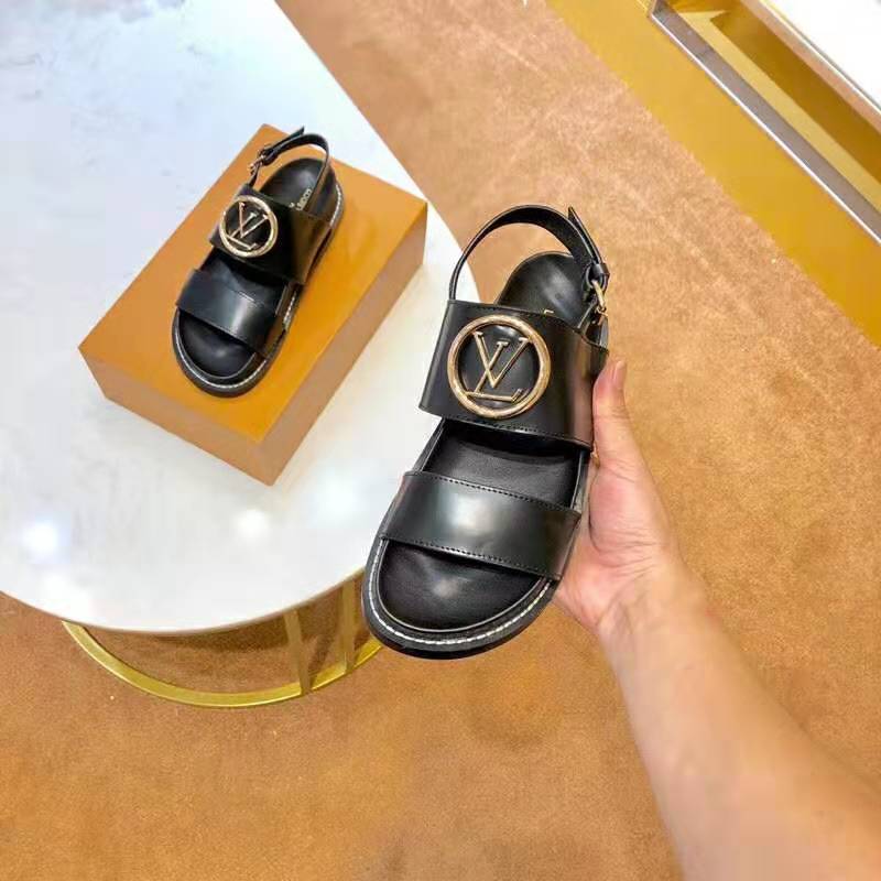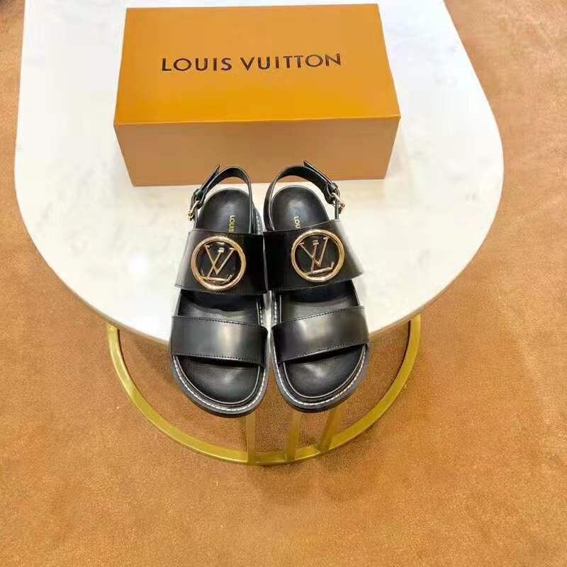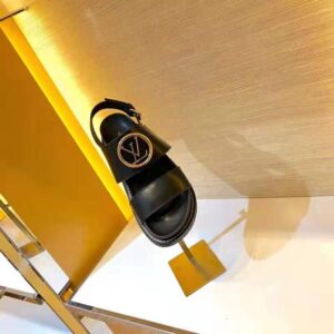 It is signed with an oversize LV Circle accessory in gold and silver-tone metal, while the back strap is adjusted with a Louis Vuitton-engraved buckle.