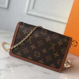 Combining Monogram and Monogram Reverse canvas, the Dauphine Chain Wallet reprises all the signatures of the iconic Dauphine collection: the vintage look, the calf-leather trim and the LV Circle clasp.