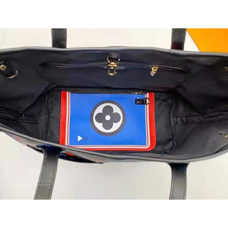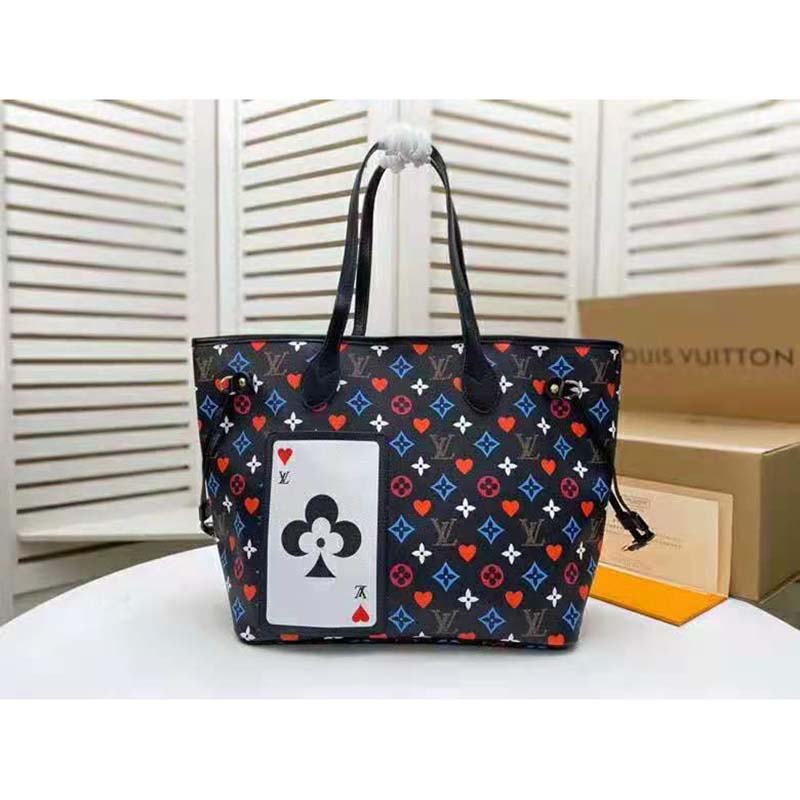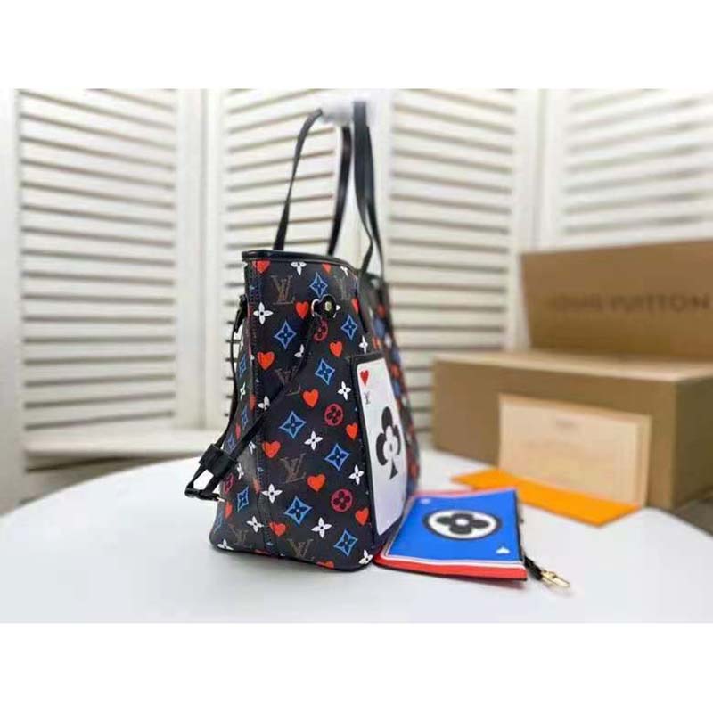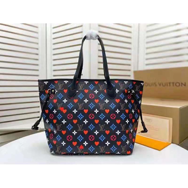 For Cruise 2021, Nicolas Ghesquière fashions the Neverfull MM tote in a transformed Game On Monogram canvas.