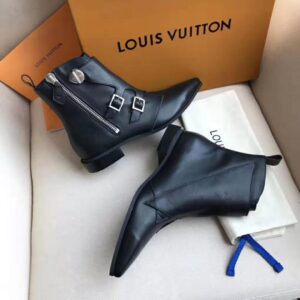 Seen on Louis Vuitton’s Spring-Summer 2019 runway, the Jumble flat ankle boot in calf leather is a boyish style with a pointed toe.