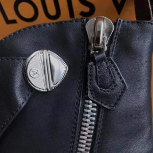 This edgy shape is complemented by angular silver-tone buckles, a side zip and an LV-engraved closure.