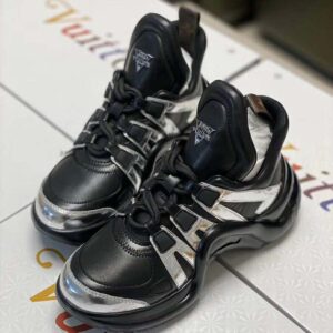 Part of the Cruise 2020 collection, this reinterpretation of the LV Archlight sneaker combines leather and technical fabrics with a striking black and silver color code.