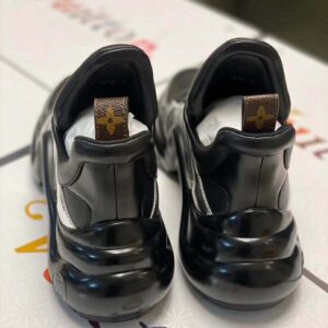 The iconic oversized outsole of the LV Archlight line comes in shiny black rubber, while the tongue features a graphic V Louis Vuitton signature inspired by the House archives.