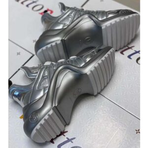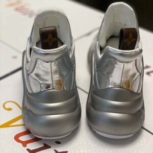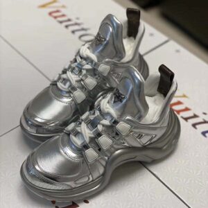 For the Cruise 2020 collection, the iconic LV Archlight sneaker is reinterpreted in a dazzling all-silver version combining leather with technical fabrics.