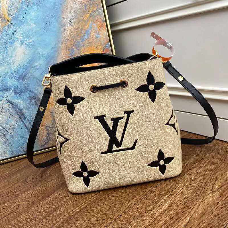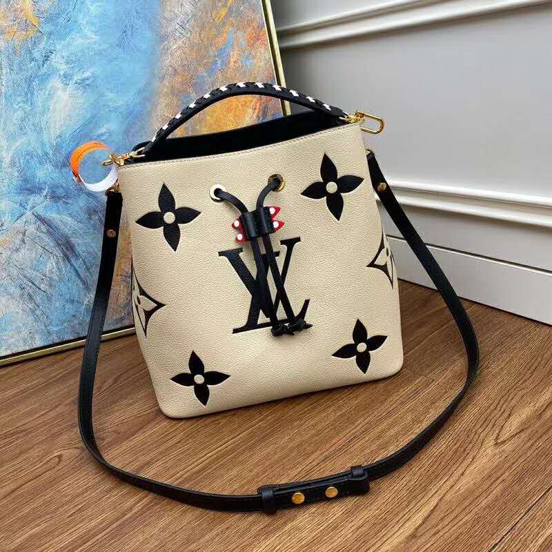 The NéoNoé MM bucket bag in embossed leather with an oversized Monogram print is a stylish and practical everyday bag.
