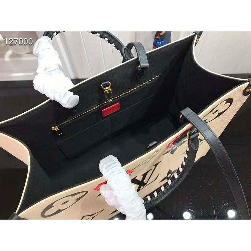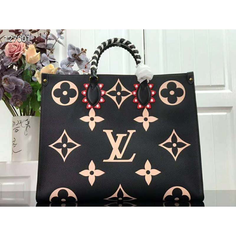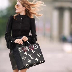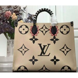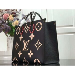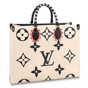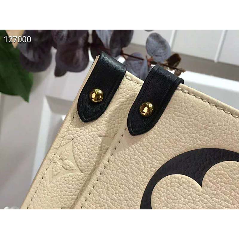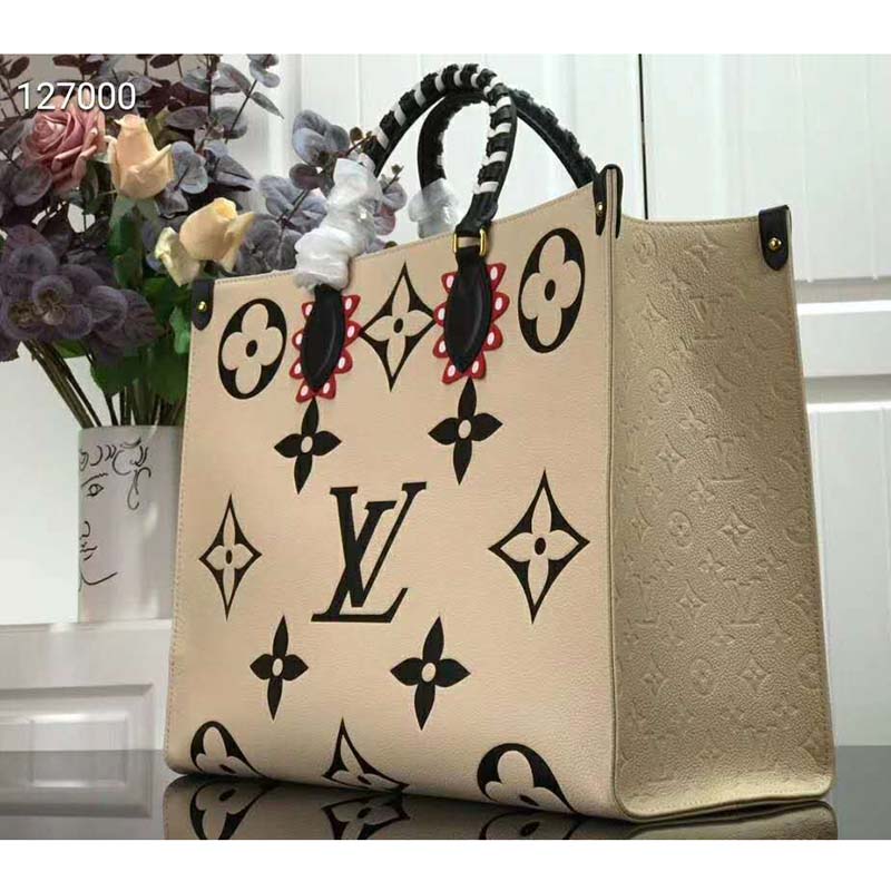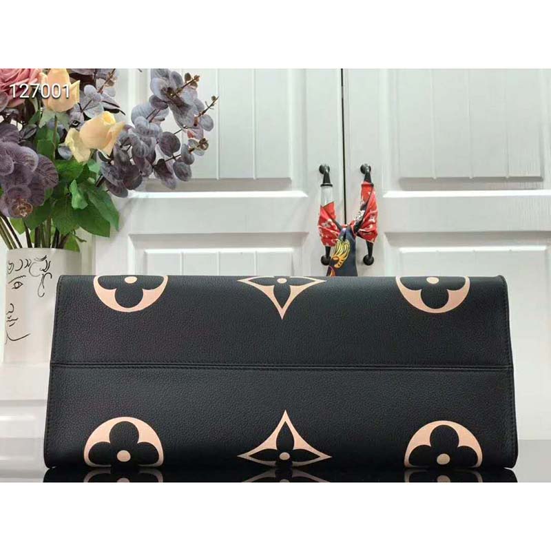 The OnTheGo GM tote bag in embossed leather is adorned with an oversized version of the iconic Monogram pattern.