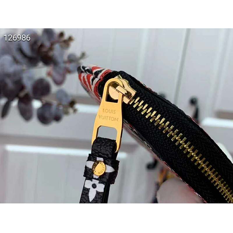 It comes in Monogram canvas, which is revisited with a graphic print inspired by abstract and graffiti art. This tiny coin purse is a practical and colorful accessory.