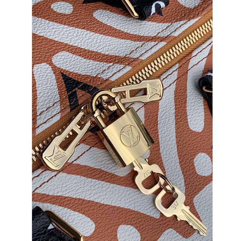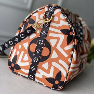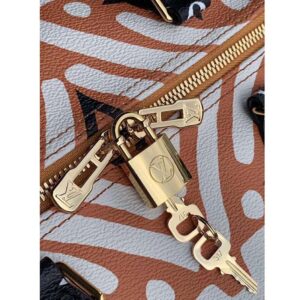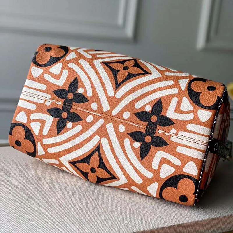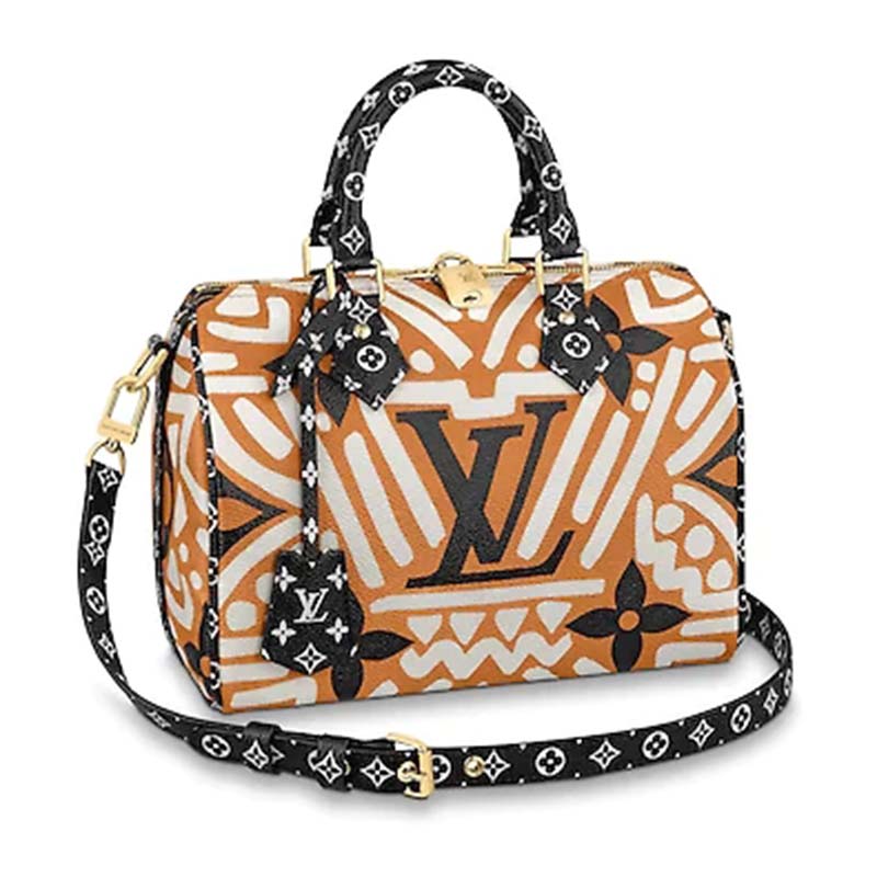 Fashioned from Monogram Giant canvas with a rhythmic allover print of energetic lines, the Speedy Bandoulière 25 handbag is part of the LV Crafty capsule collection.