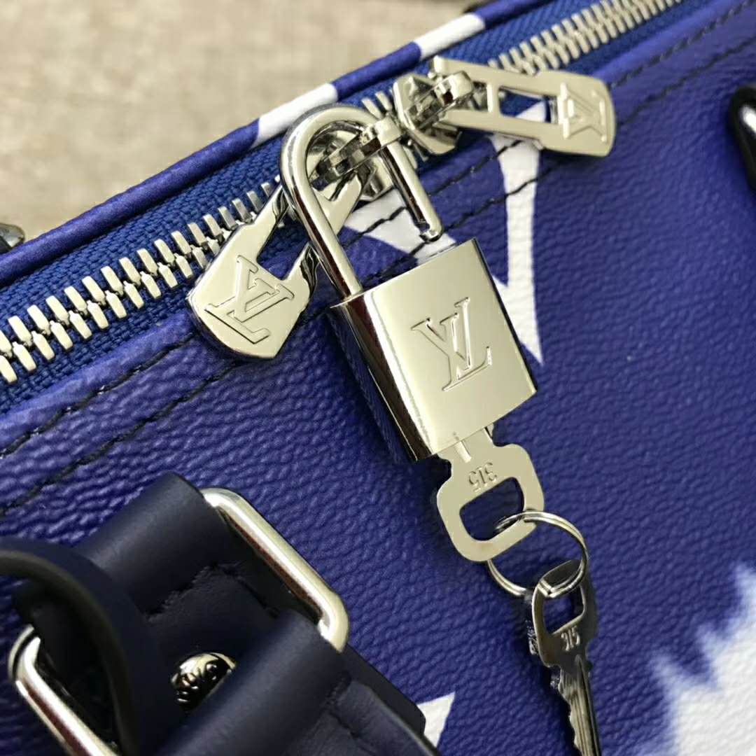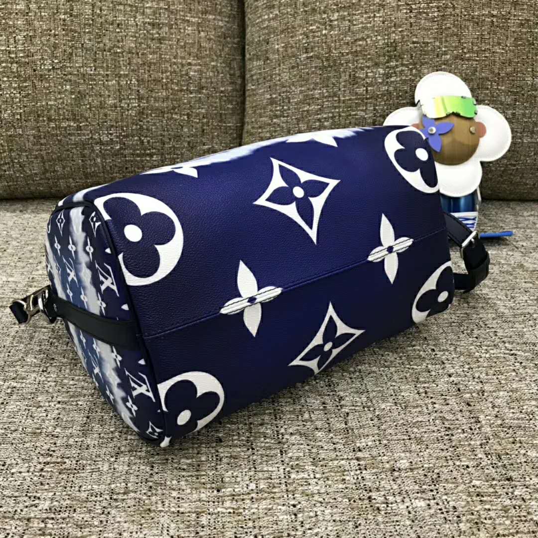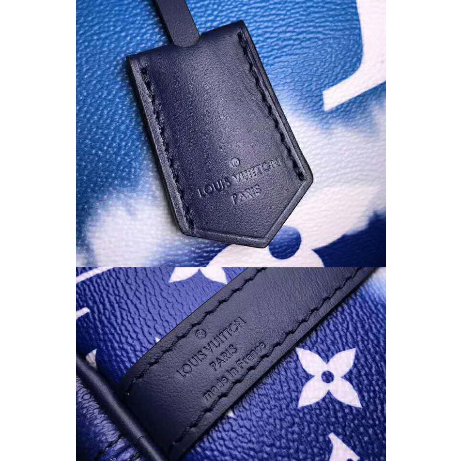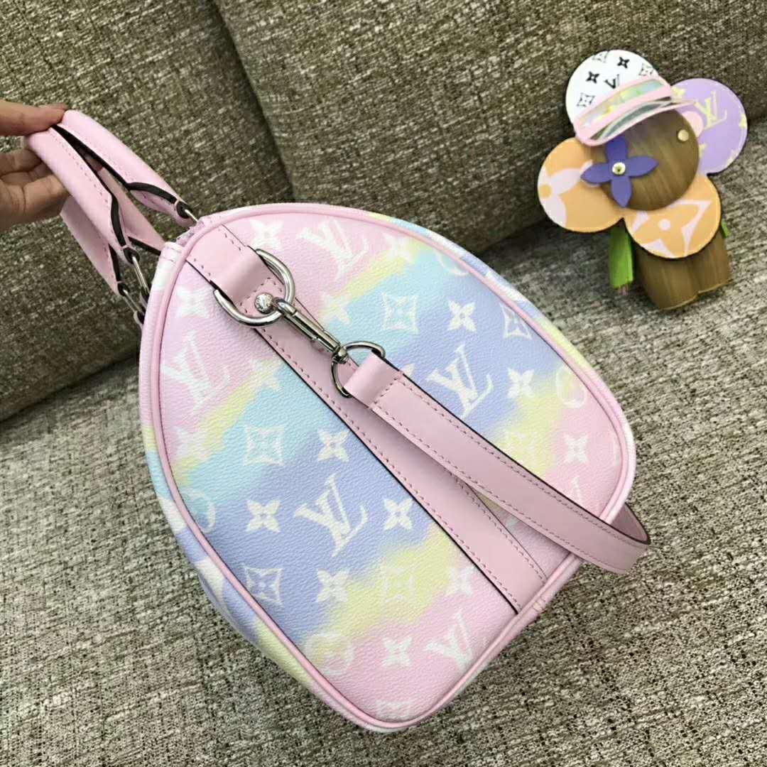 Tie-Dye Monogram canvas brings a beachy feel to the Speedy Bandoulière 30, a classic Louis Vuitton city bag relooked for the LV Escale Collection.