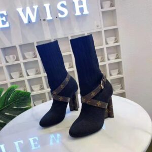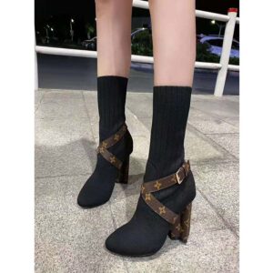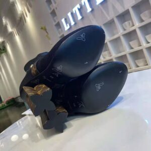 This design is complemented by Monogram-canvas trim on the straps which cross over the foot and on the Monogram Flower-shaped heel, which is a key signature of the Louis Vuitton shoe collection.