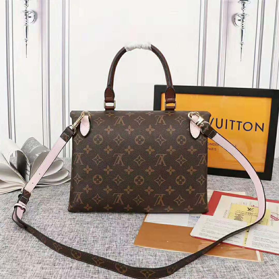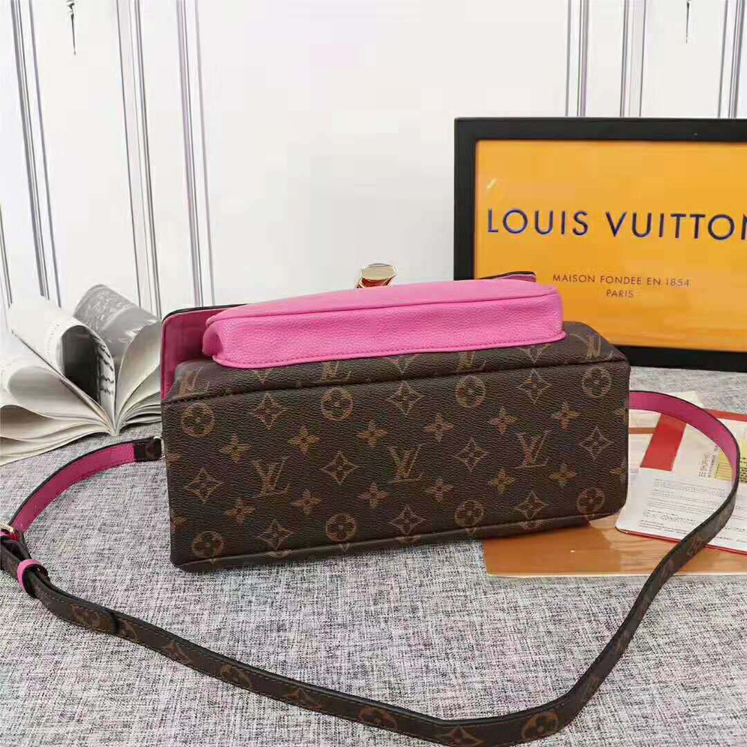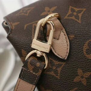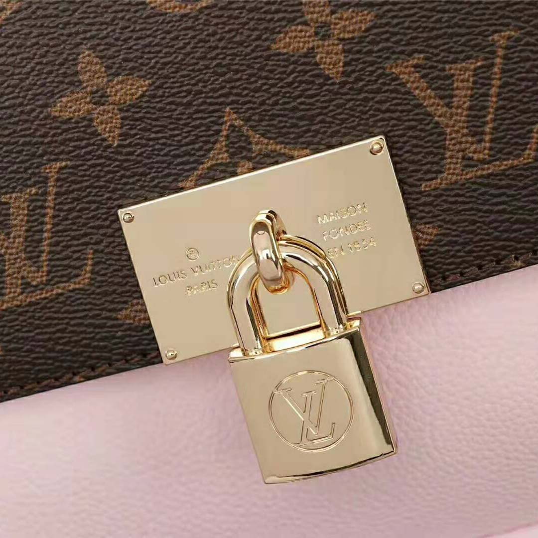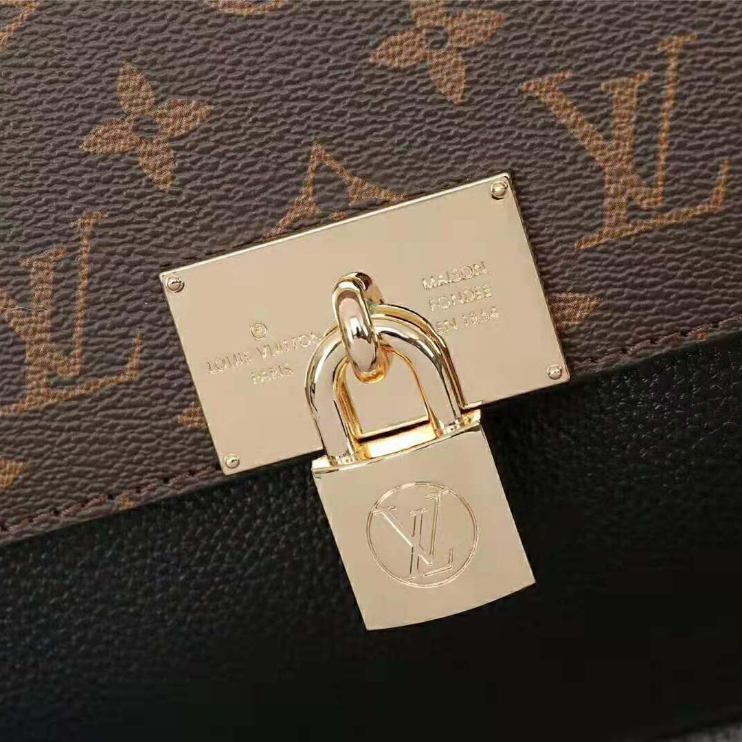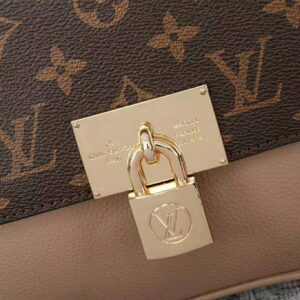 Crafted from Monogram canvas combined with contrasting calf leather, it features a magnetic LV padlock closure with an antiqued golden finish.