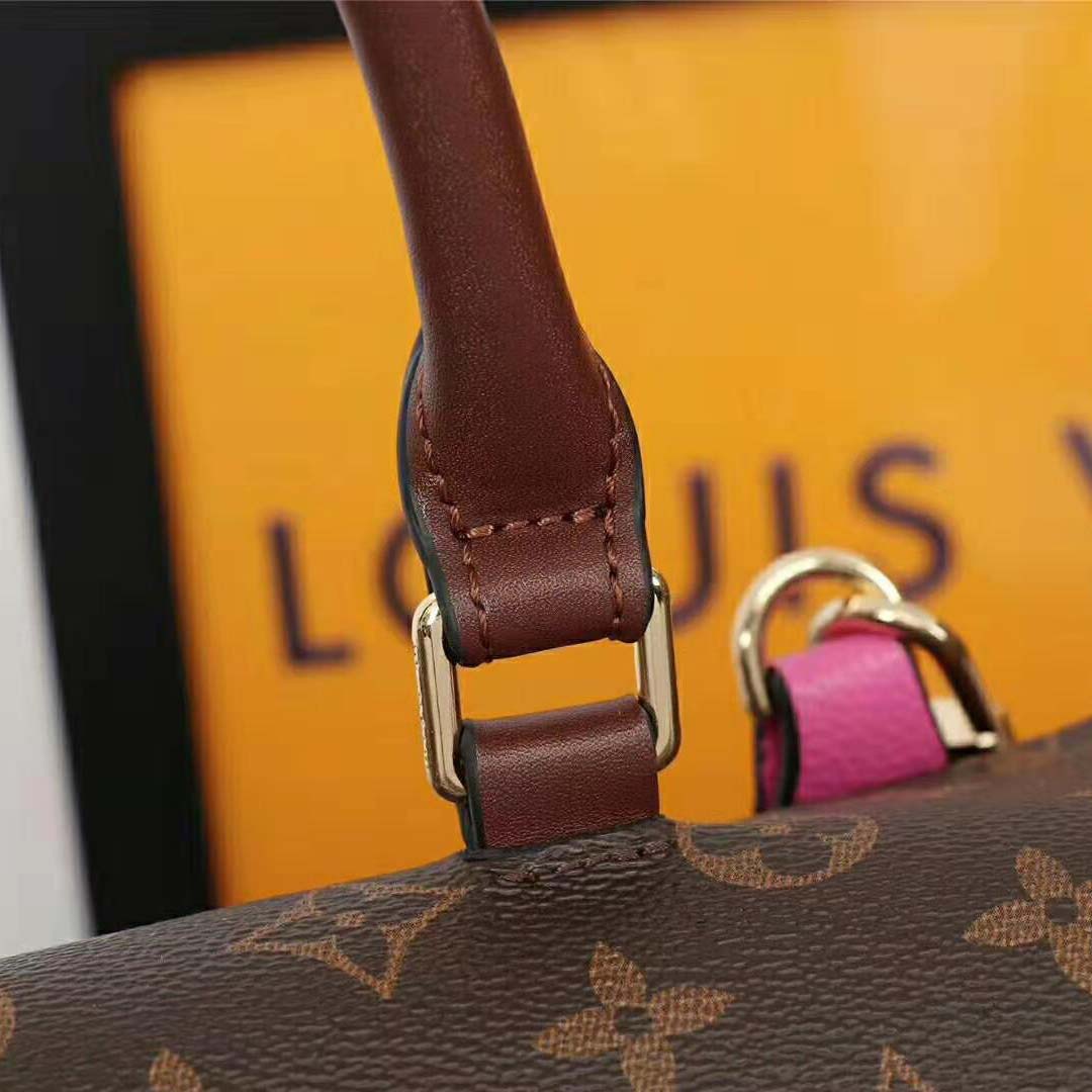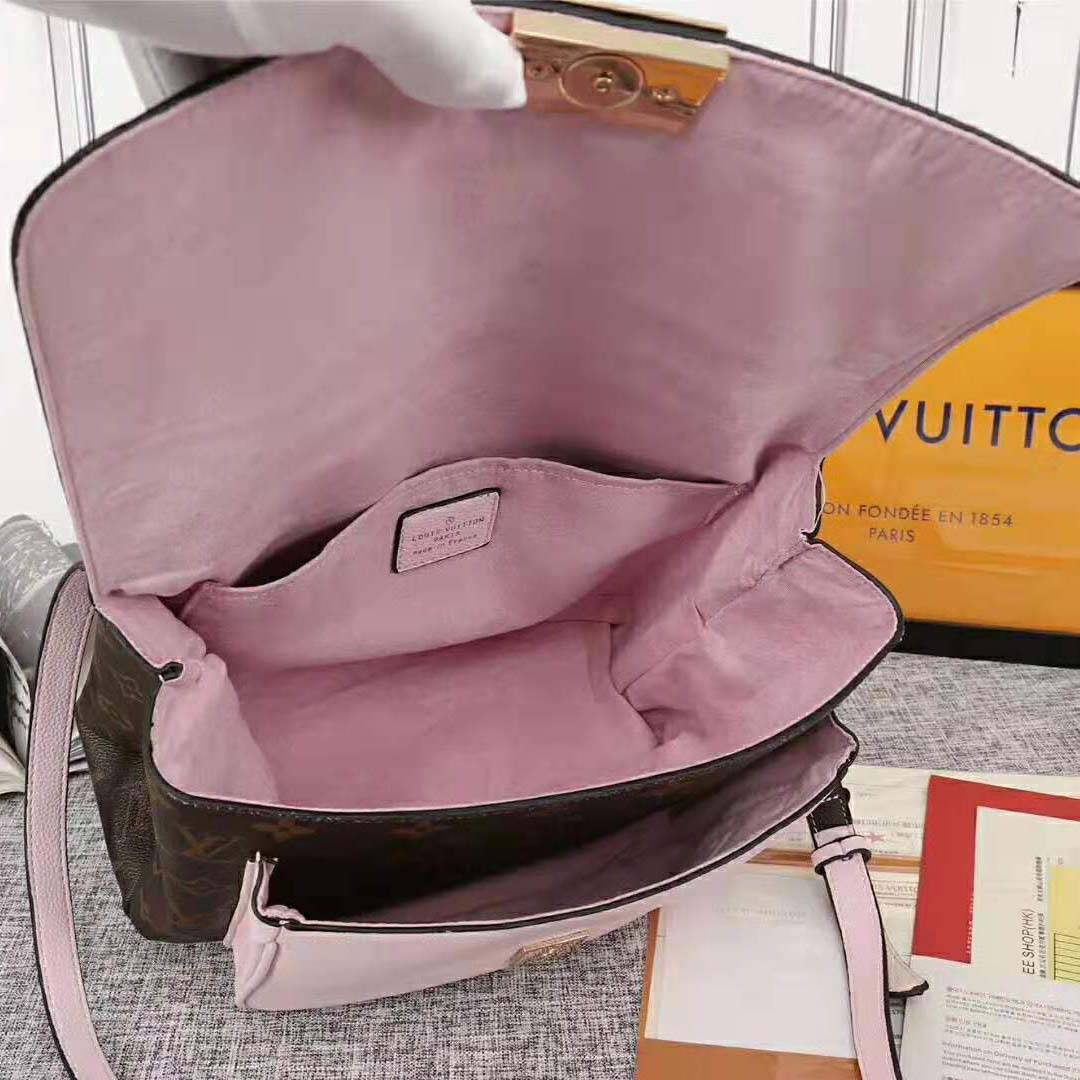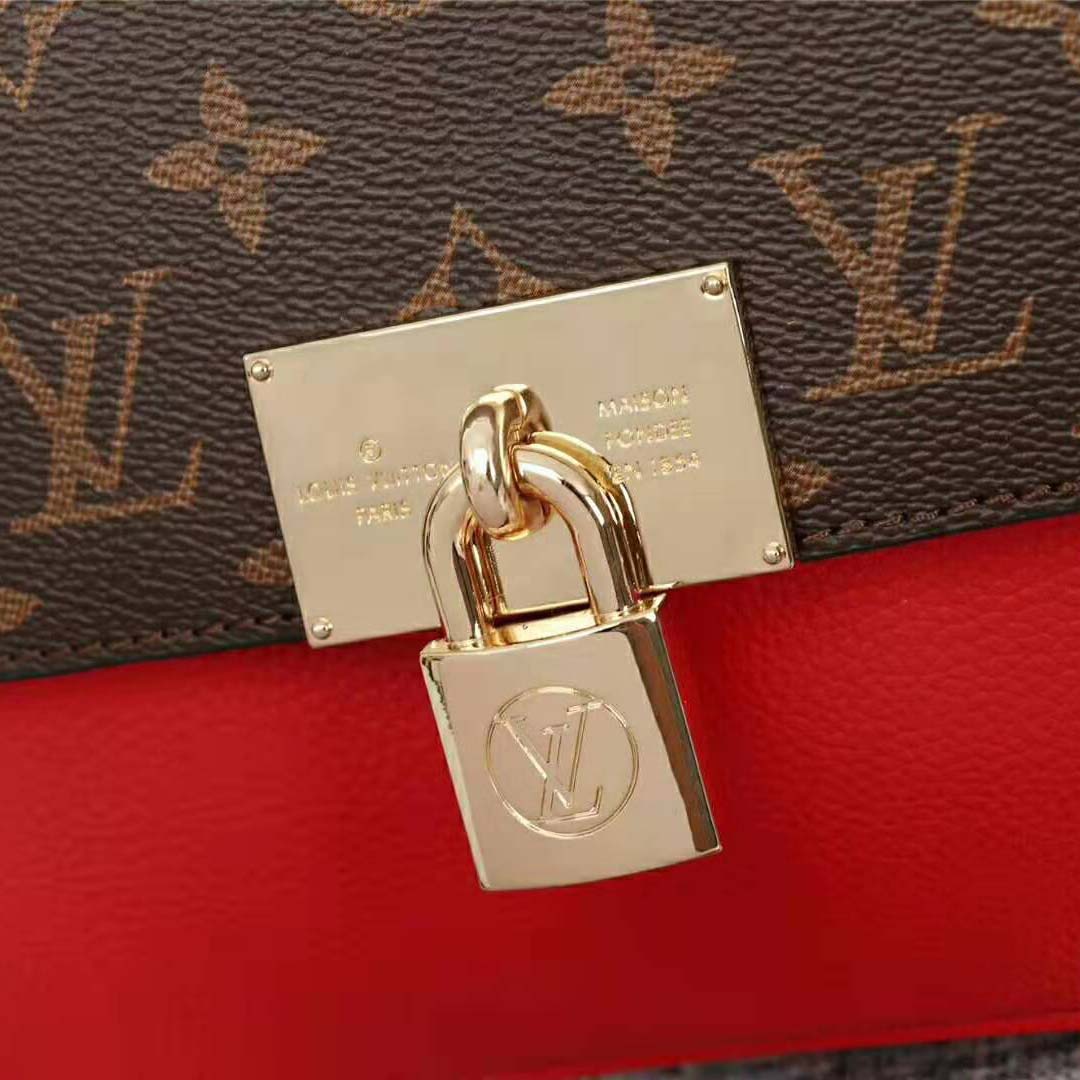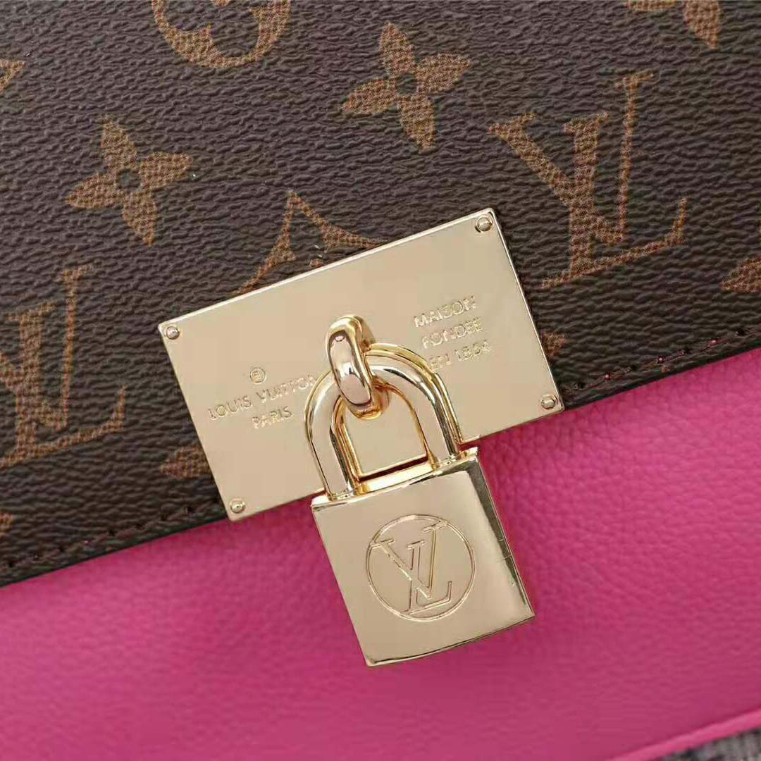Crafted from Monogram canvas combined with contrasting calf leather, it features a magnetic LV padlock closure with an antiqued golden finish.