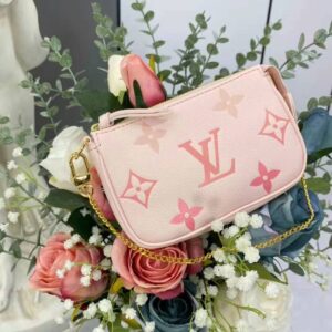 Louis Vuitton LV Women Mini Pochette Accessoires Pink Monogram Empreinte Embossed Supple Grained Cowhide