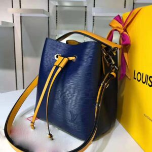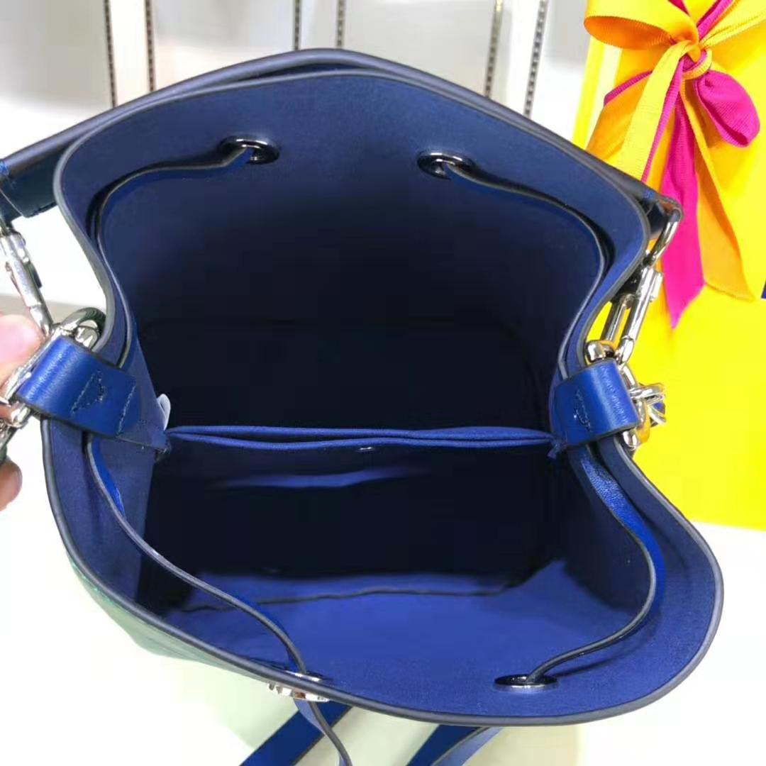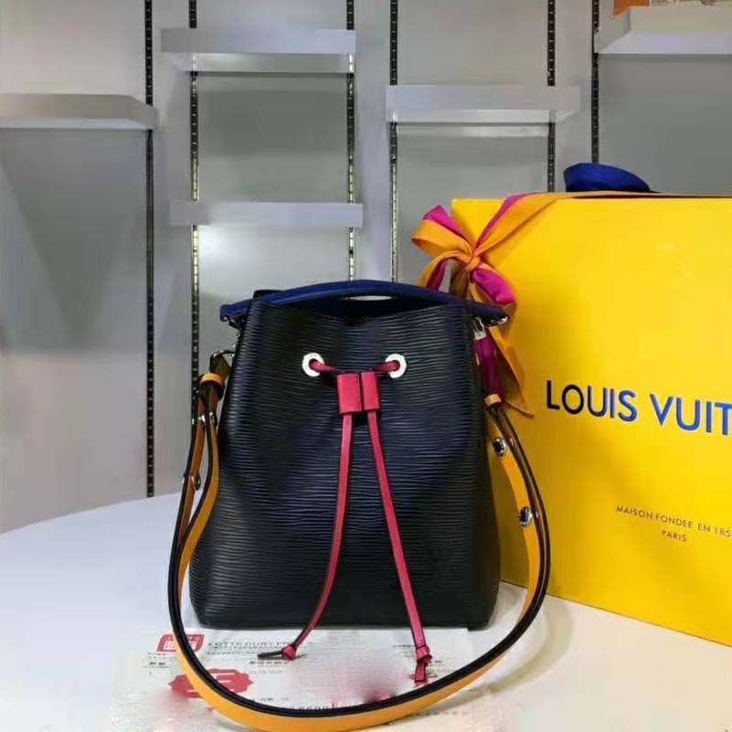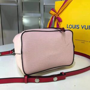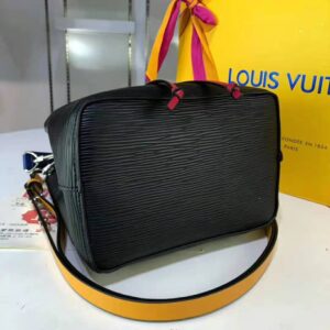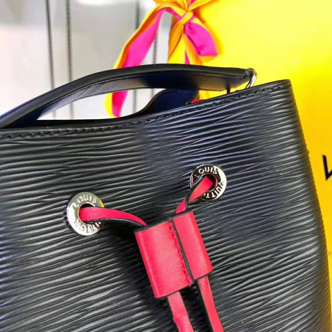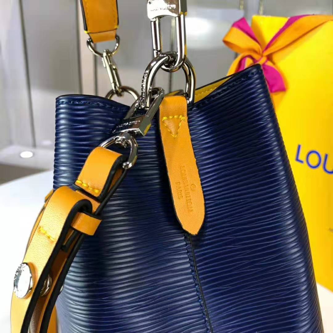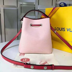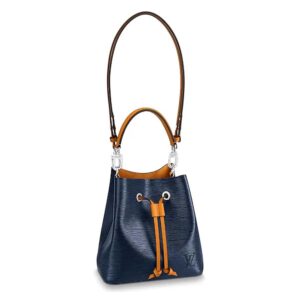 Crafted from textured Epi leather with contrasting smooth leather drawstring laces and trim, it features a removable top handle and an adjustable smart strap with press studs, for hand carry or over-the-shoulder wear.