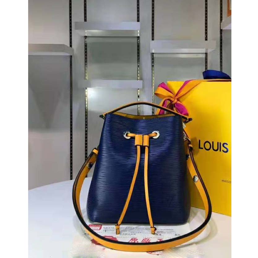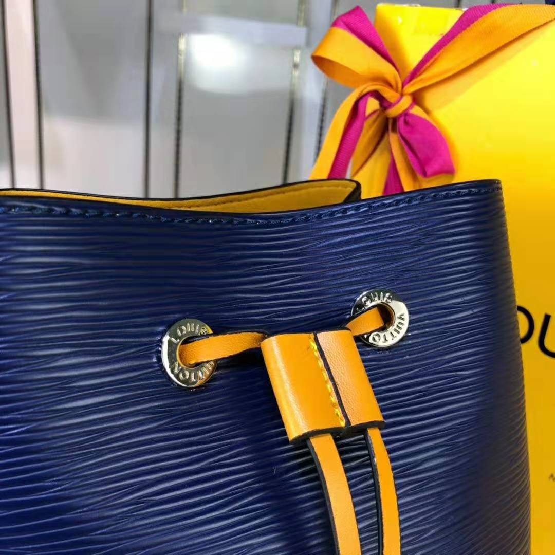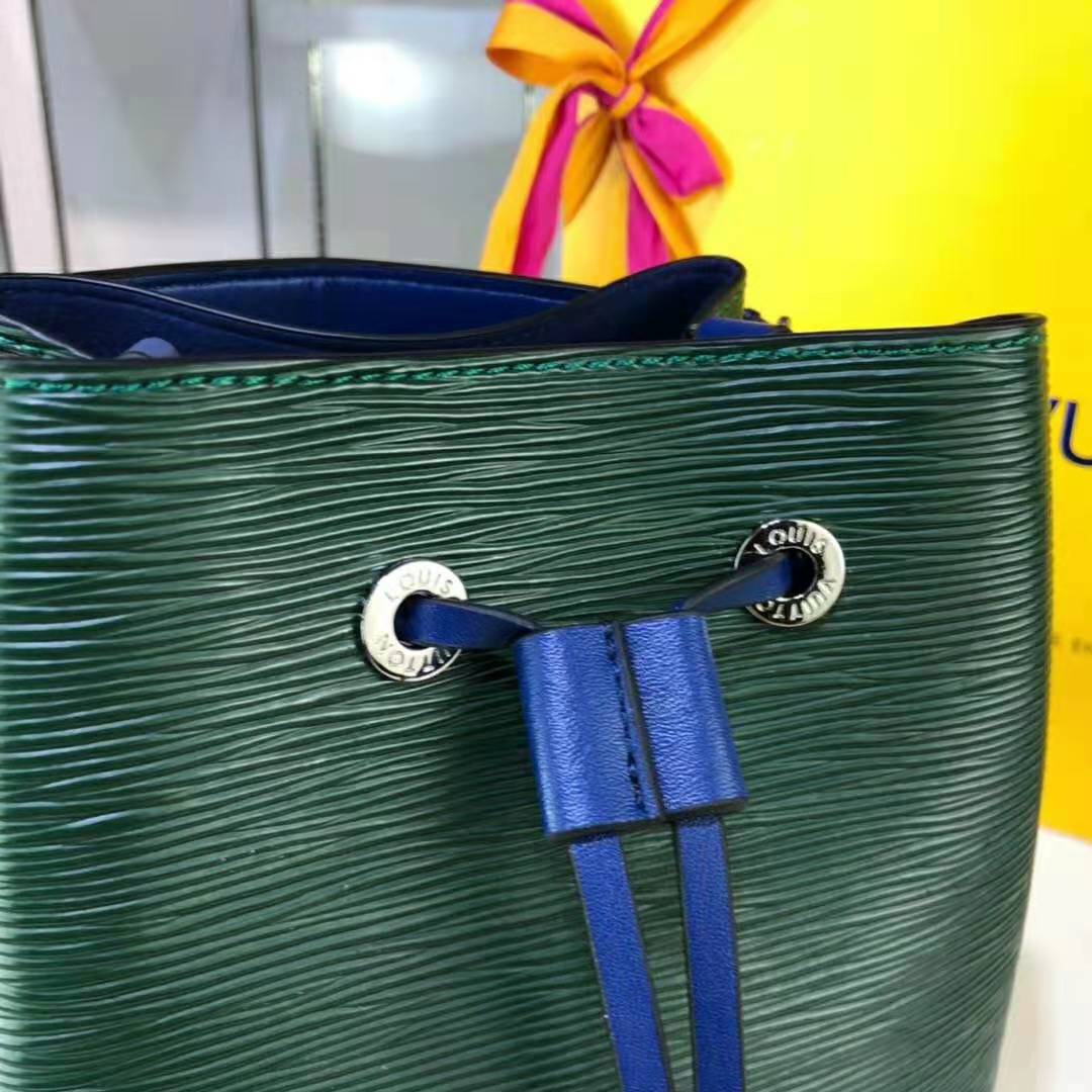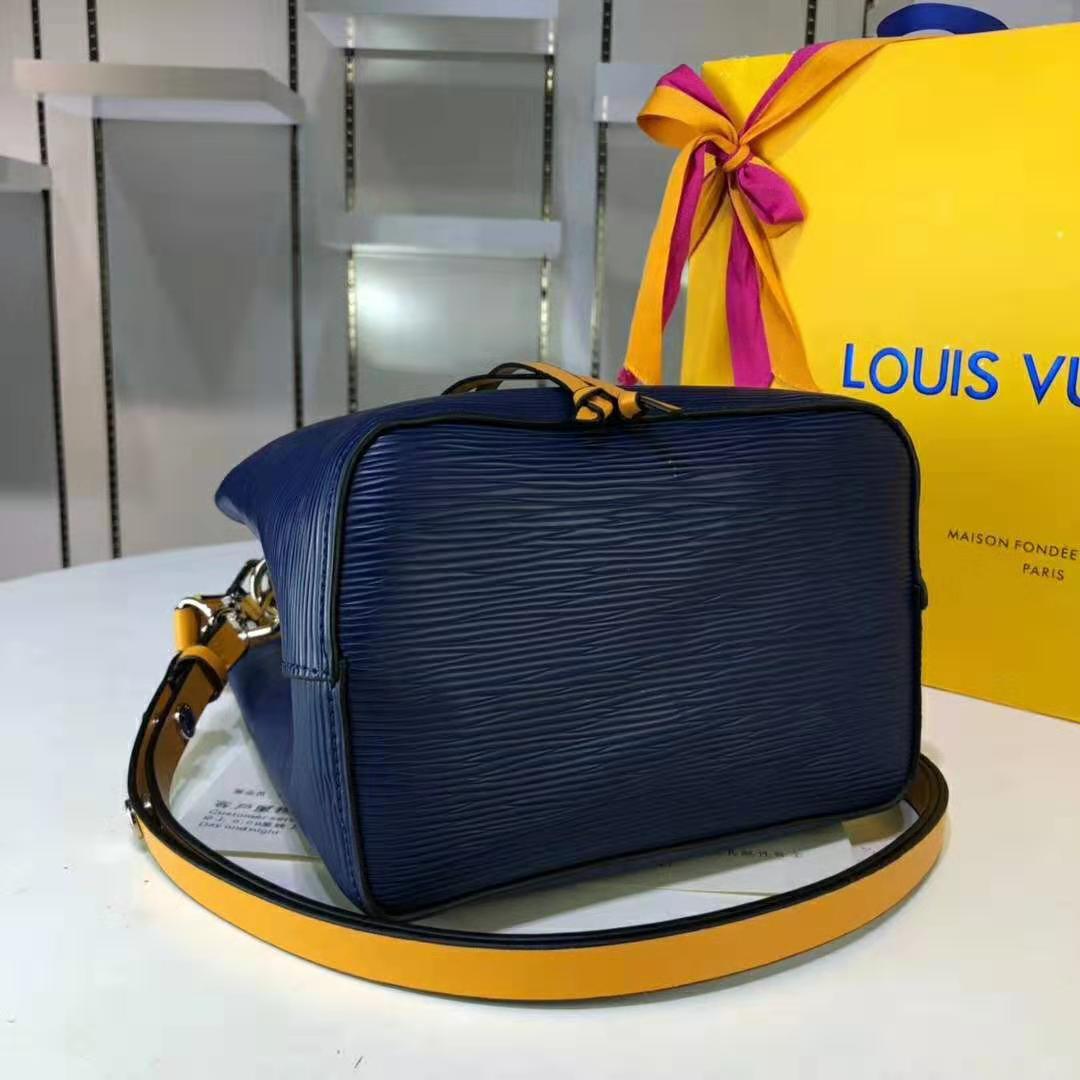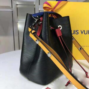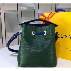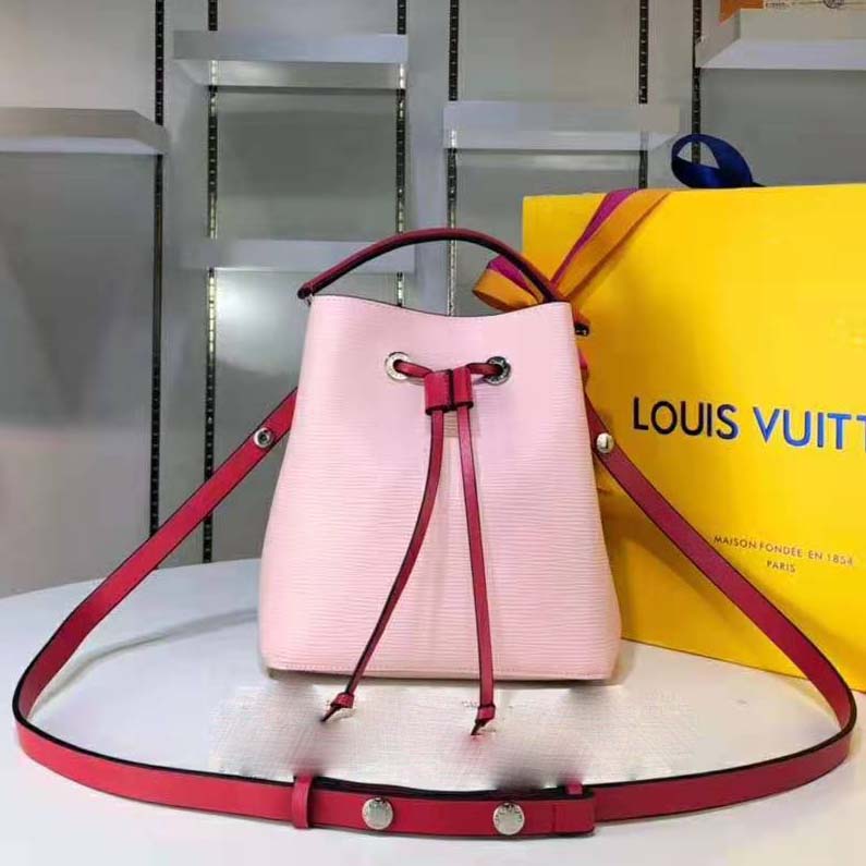 Crafted from textured Epi leather with contrasting smooth leather drawstring laces and trim, it features a removable top handle and an adjustable smart strap with press studs, for hand carry or over-the-shoulder wear.