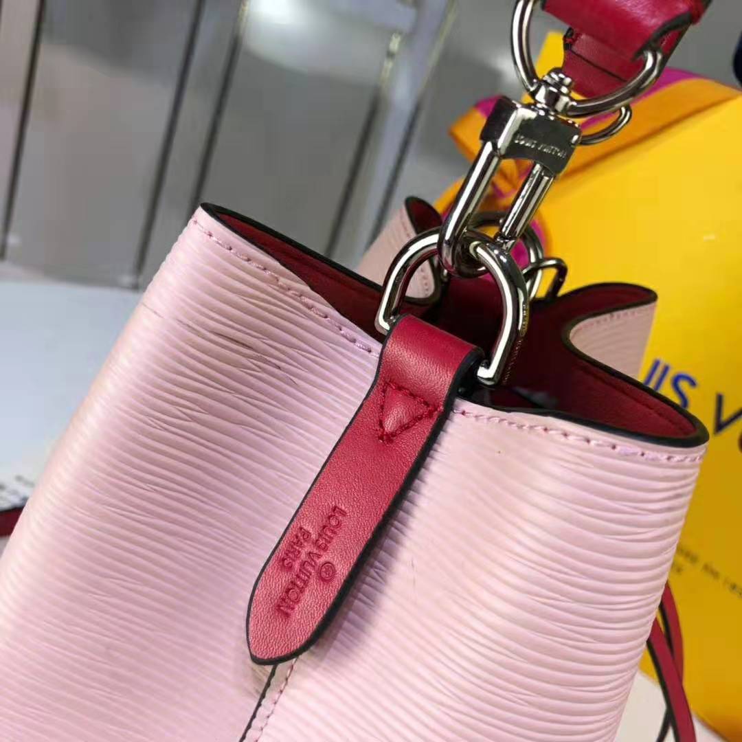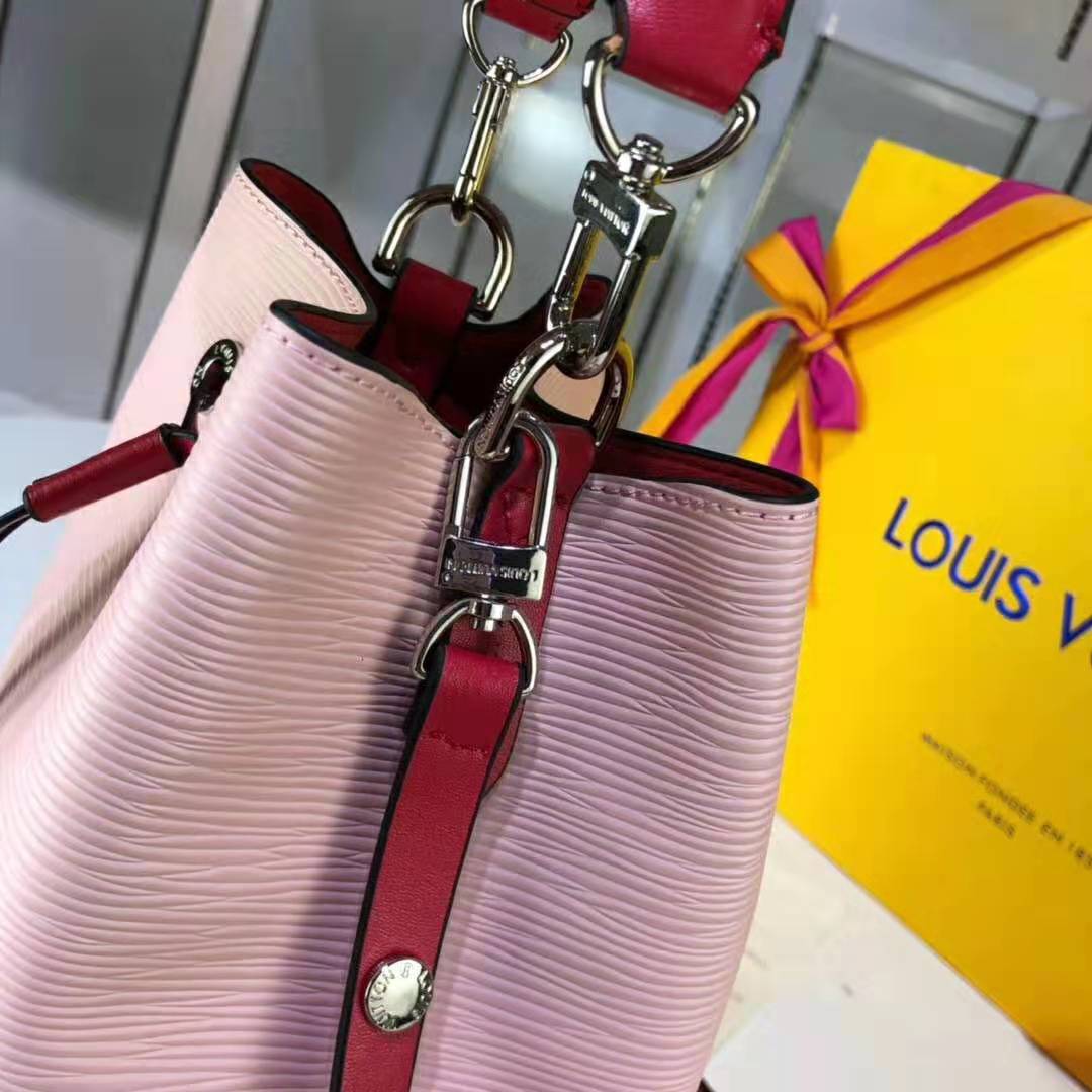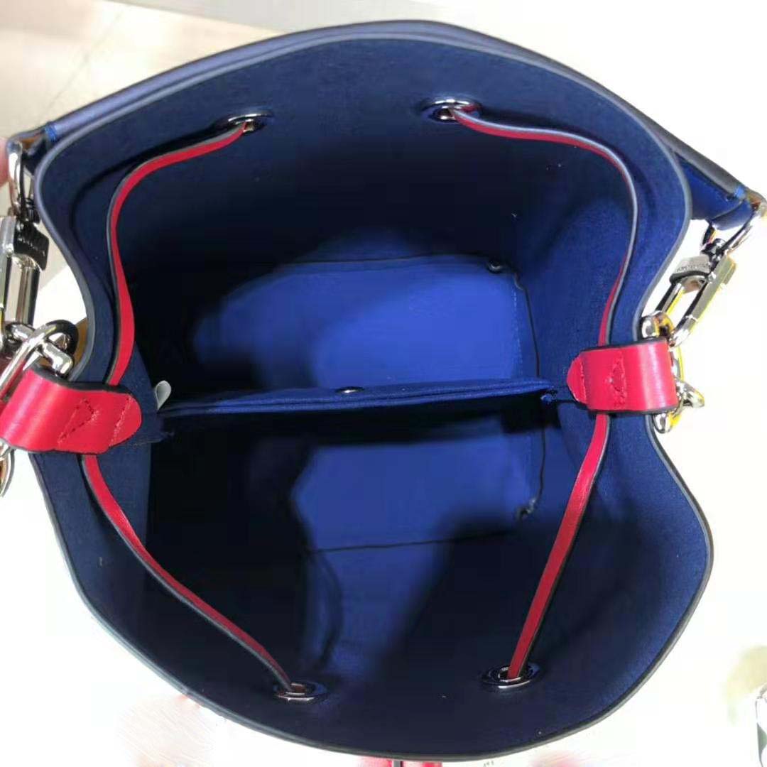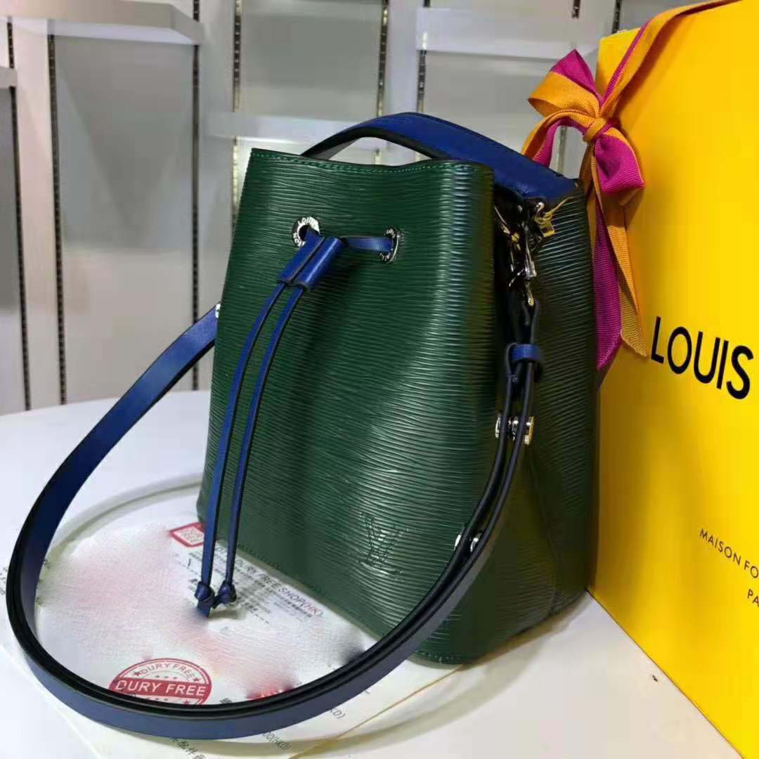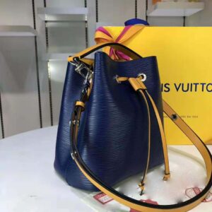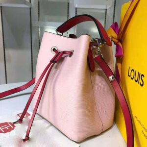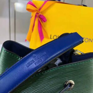 Crafted from textured Epi leather with contrasting smooth leather drawstring laces and trim, it features a removable top handle and an adjustable smart strap with press studs, for hand carry or over-the-shoulder wear.