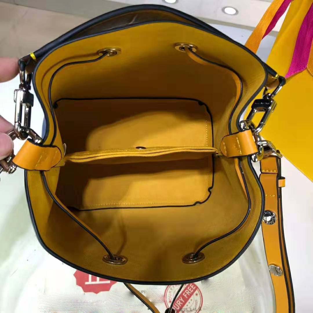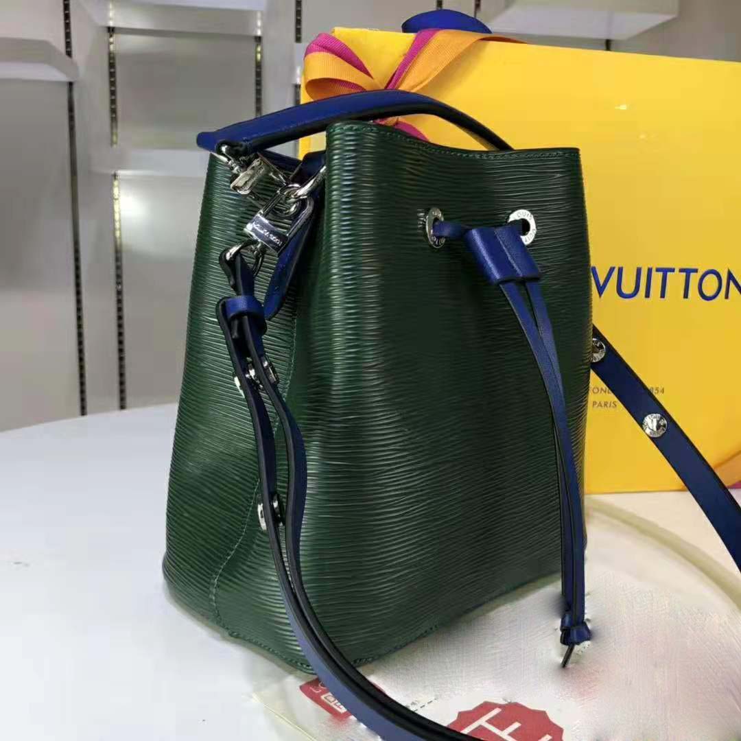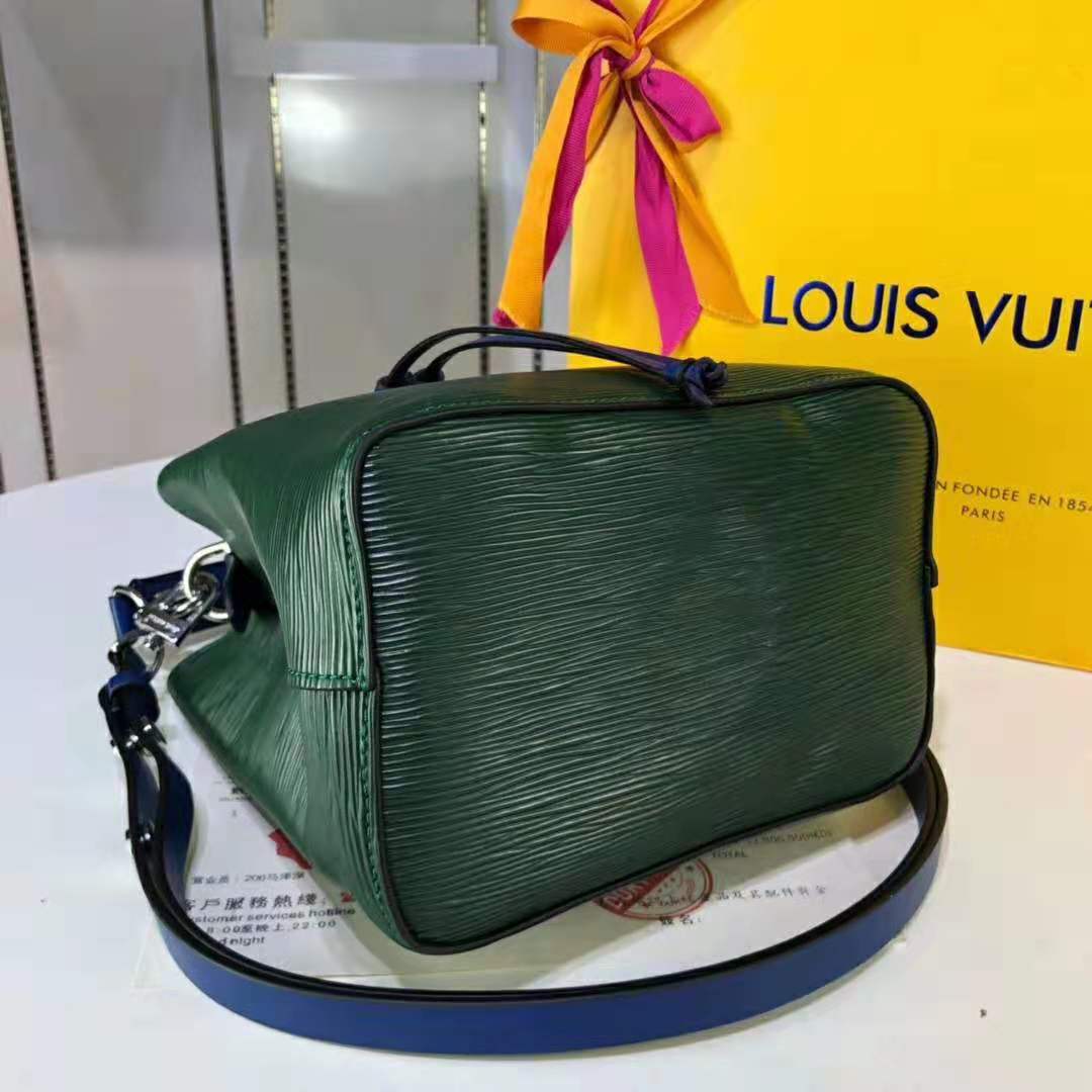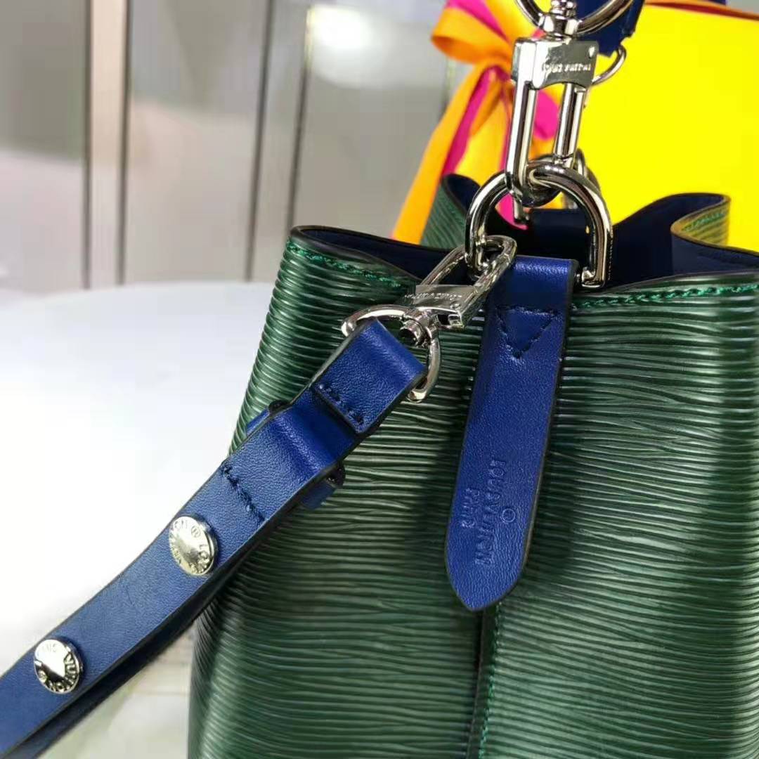 Crafted from textured Epi leather with contrasting smooth leather drawstring laces and trim, it features a removable top handle and an adjustable smart strap with press studs, for hand carry or over-the-shoulder wear.
