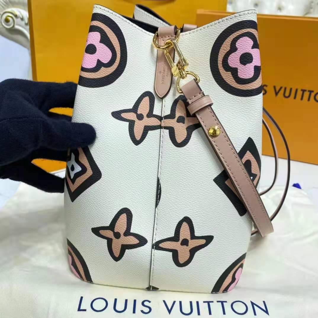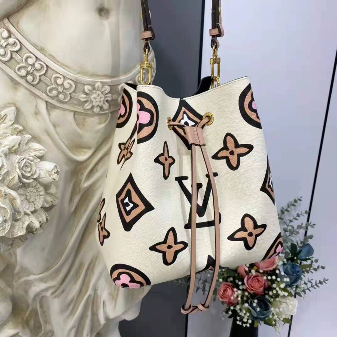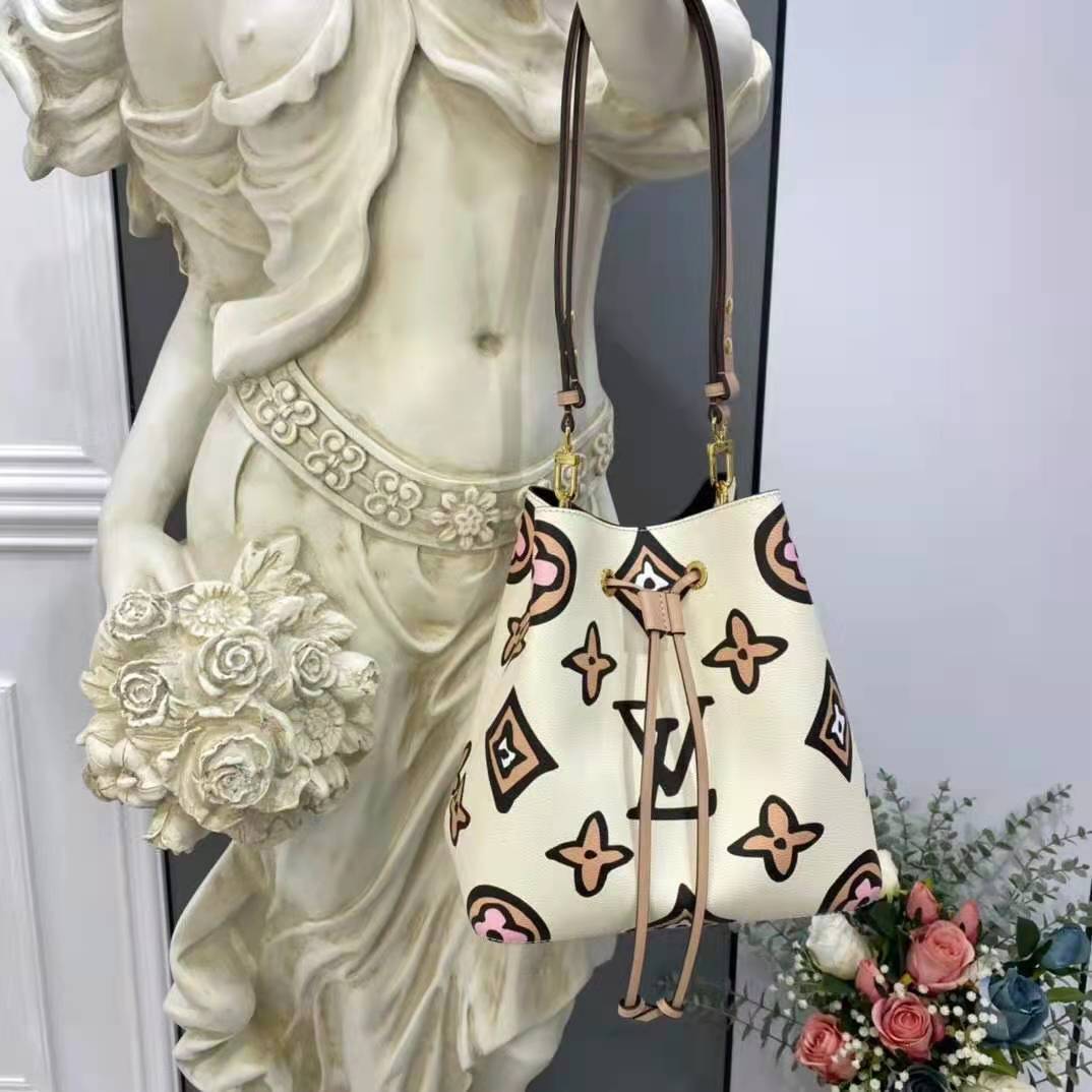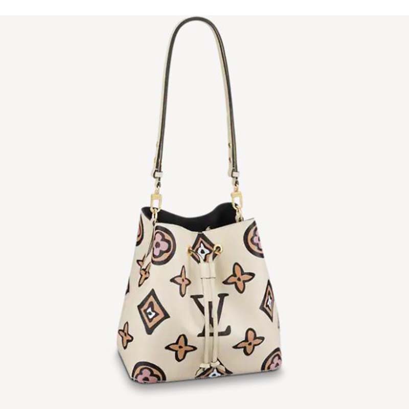 From the Wild at Heart capsule created for Fall 2021, the NéoNoé MM bucket bag wears the season’s Monogram pattern, inspired by an archival House print.