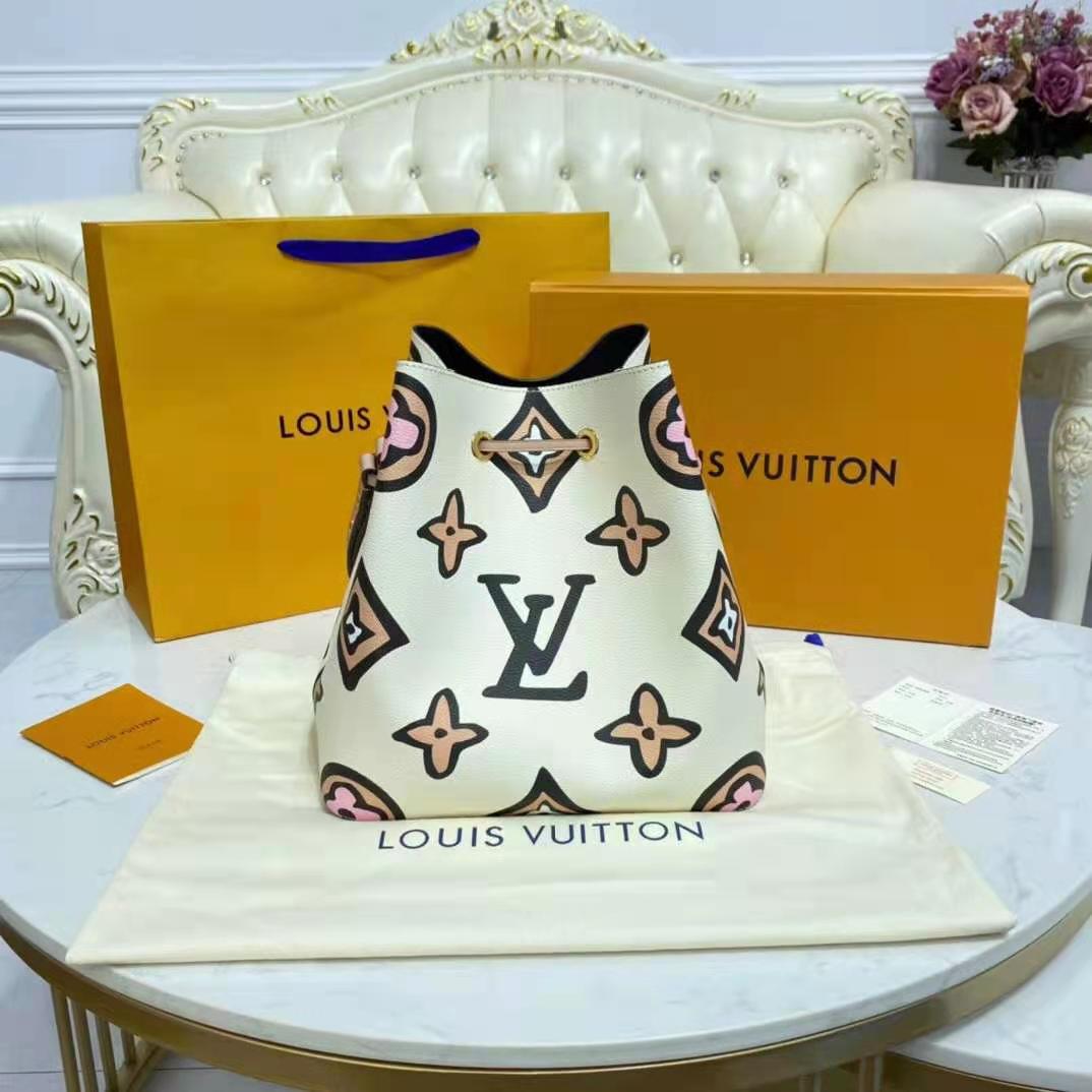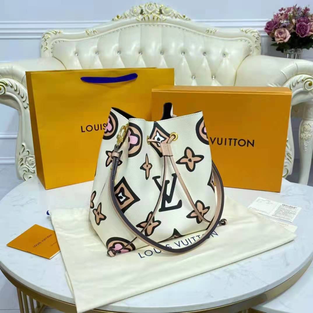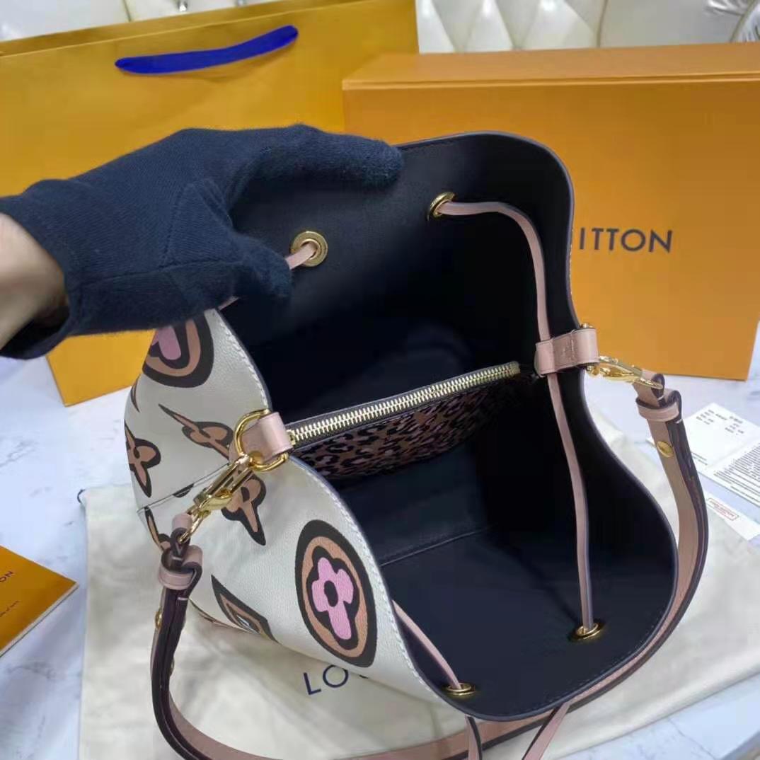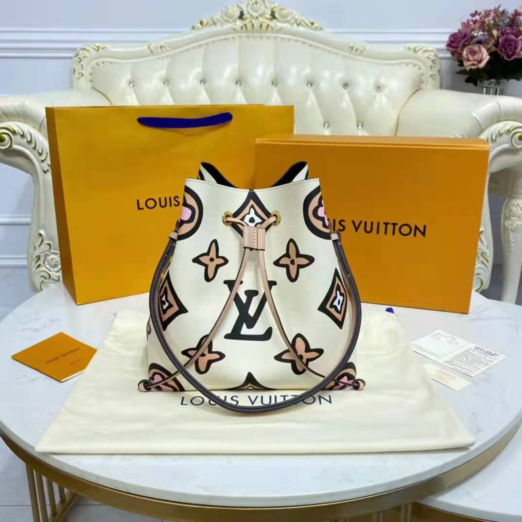 From the Wild at Heart capsule created for Fall 2021, the NéoNoé MM bucket bag wears the season’s Monogram pattern, inspired by an archival House print.