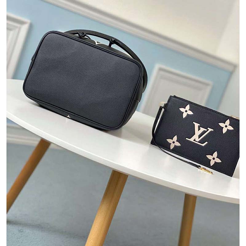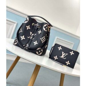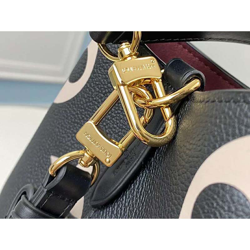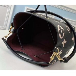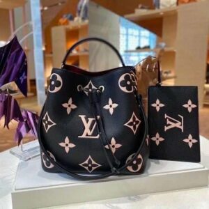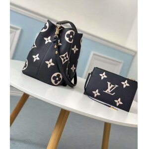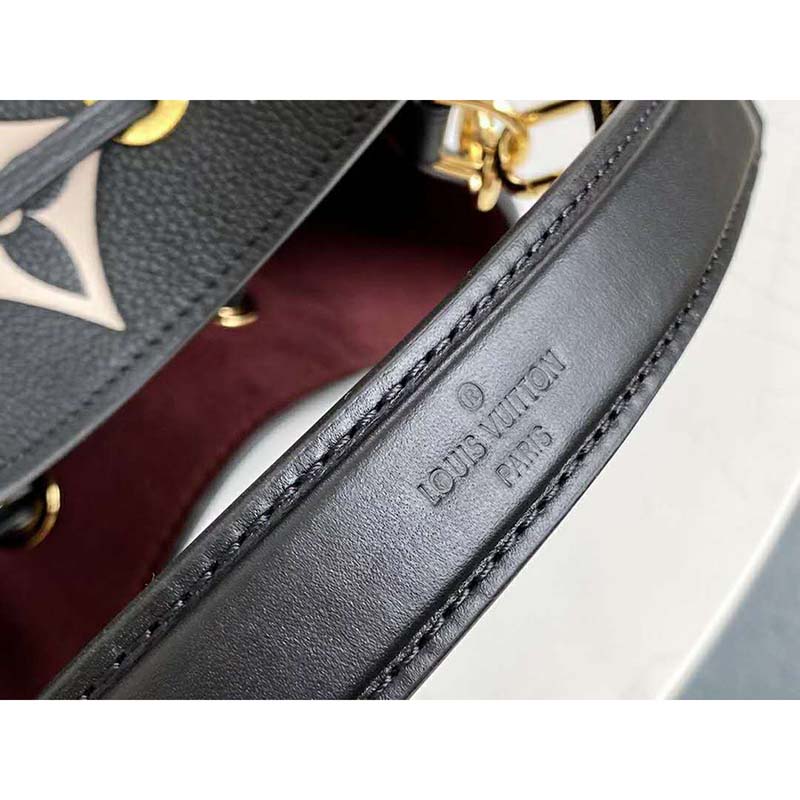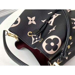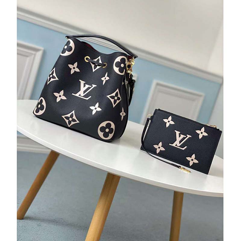 The bold LV Initials and Monogram Flowers bring a fashionable feel to this NéoNoé MM bucket bag.