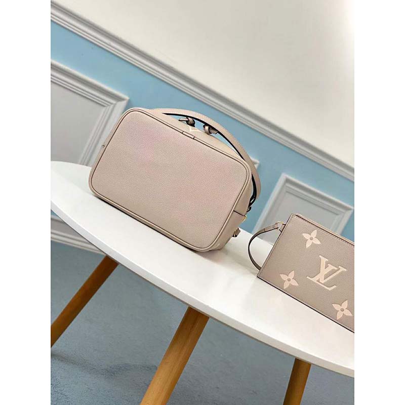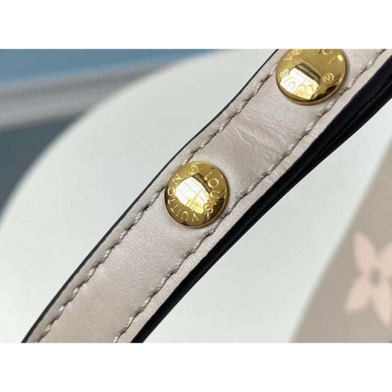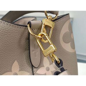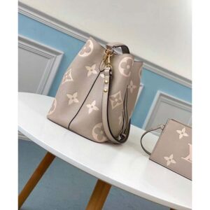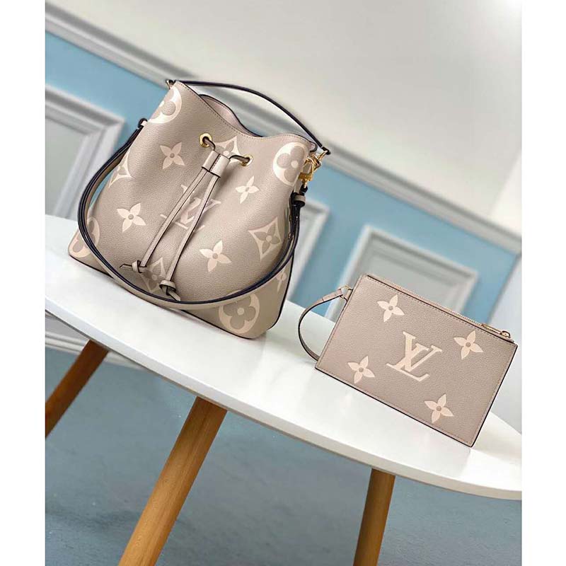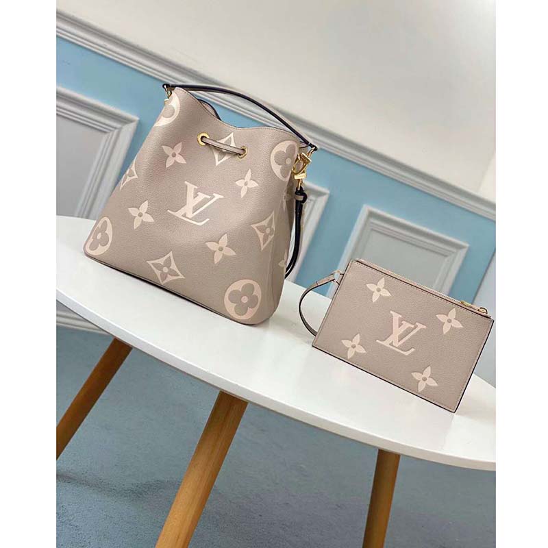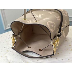 The bold LV Initials and Monogram Flowers bring a fashionable feel to this NéoNoé MM bucket bag.