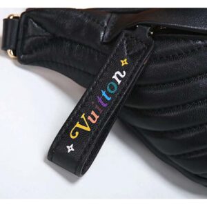 It features a vintage gold-color LV on the front, and a zip pull with a multicolored “Vuitton” signature.
