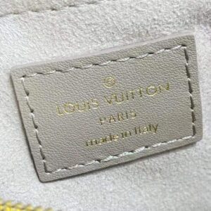 The recognizable LV emblem signs the bag.