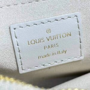 The recognizable LV emblem signs the bag.