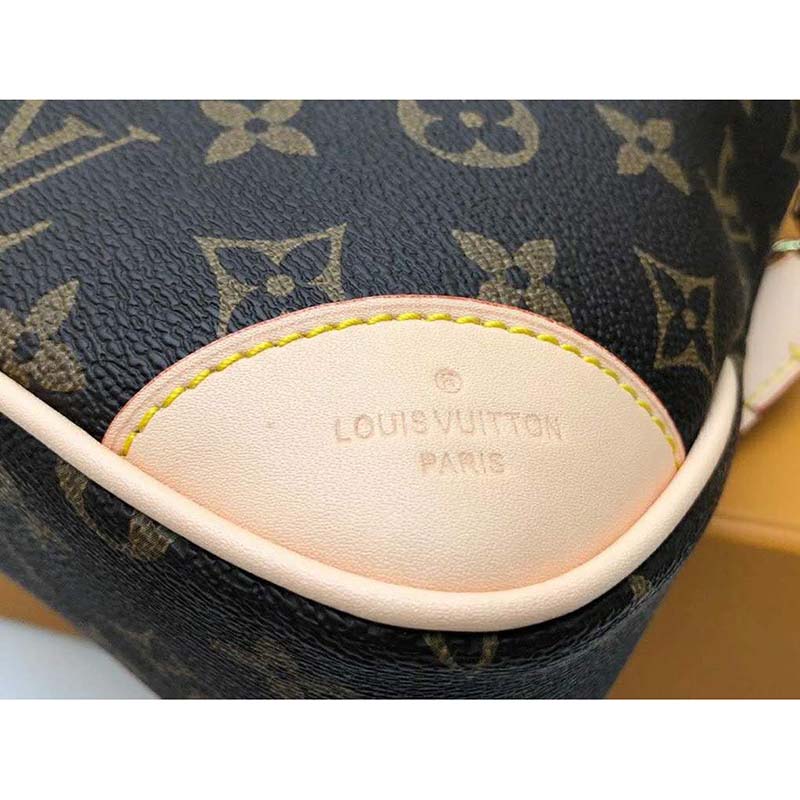 Reinforced leather corners and Monogram canvas give this practical bag a retro charm.