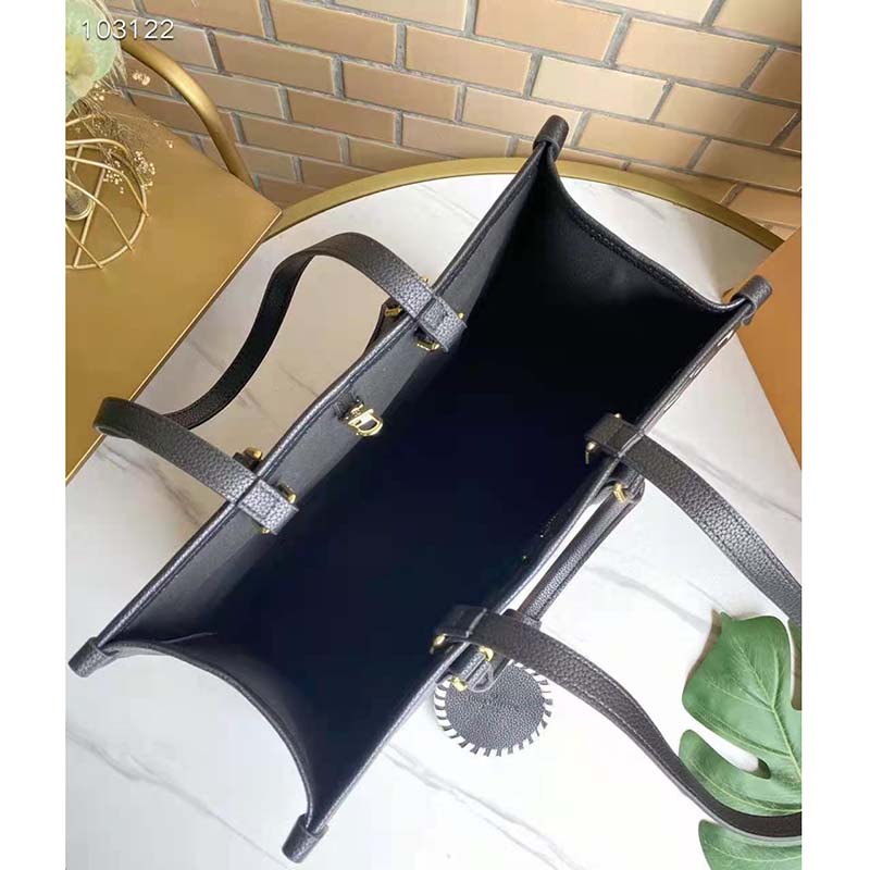 The OnTheGo MM is a medium-sized tote bag with two sets of handles, long and short, for hand and shoulder carry.