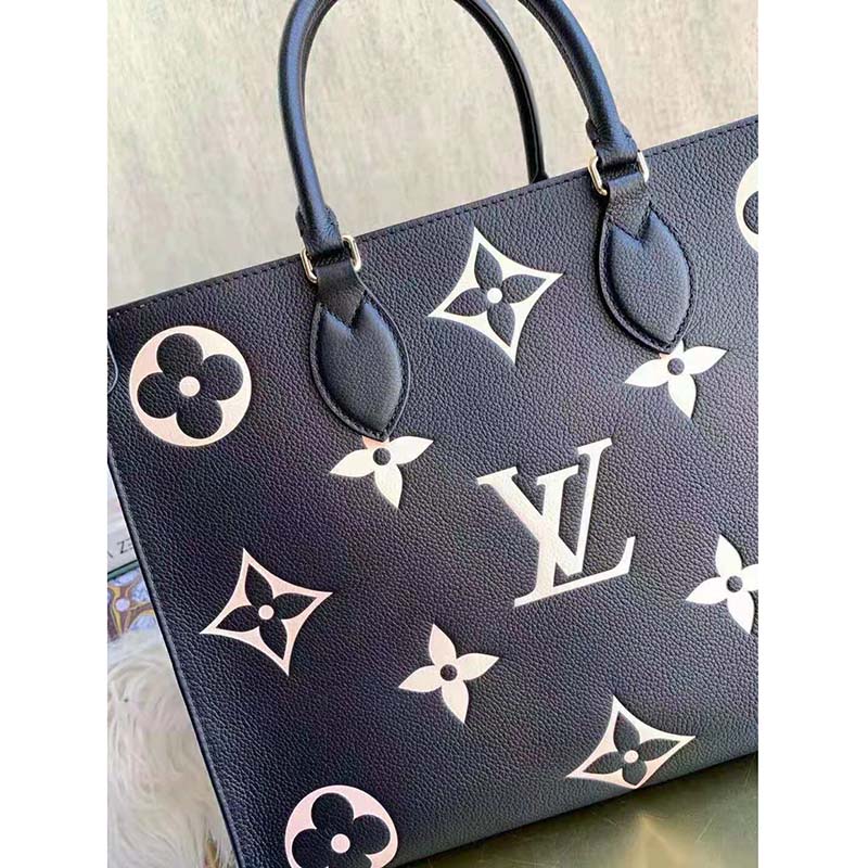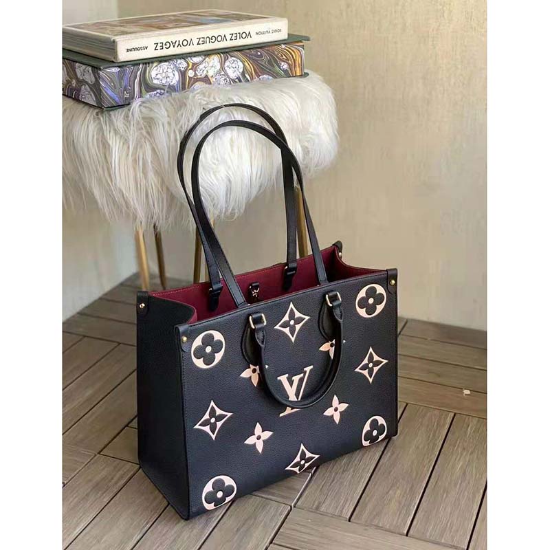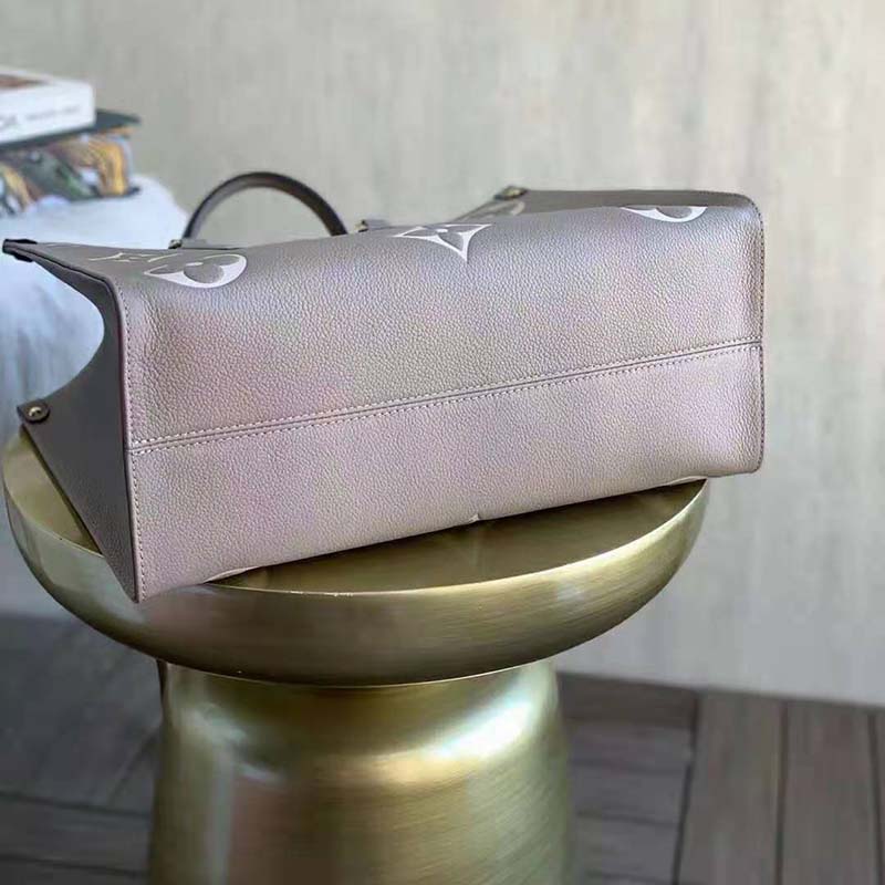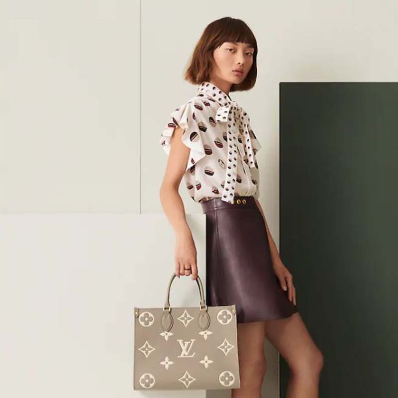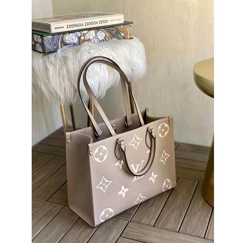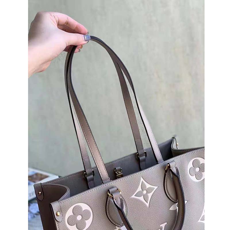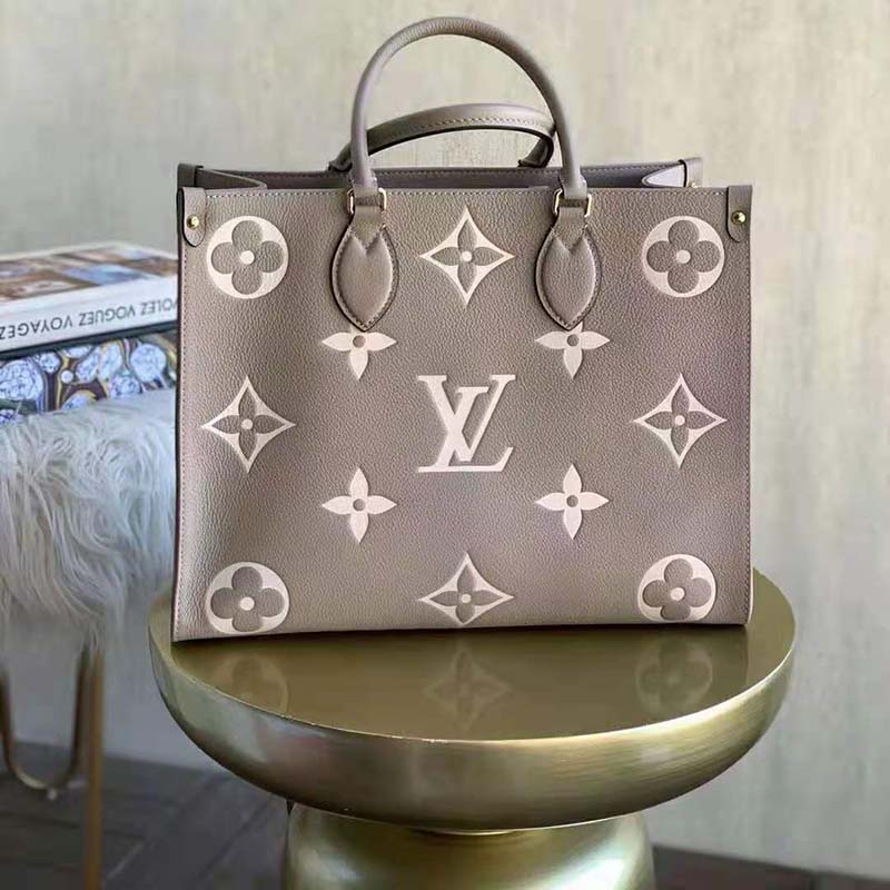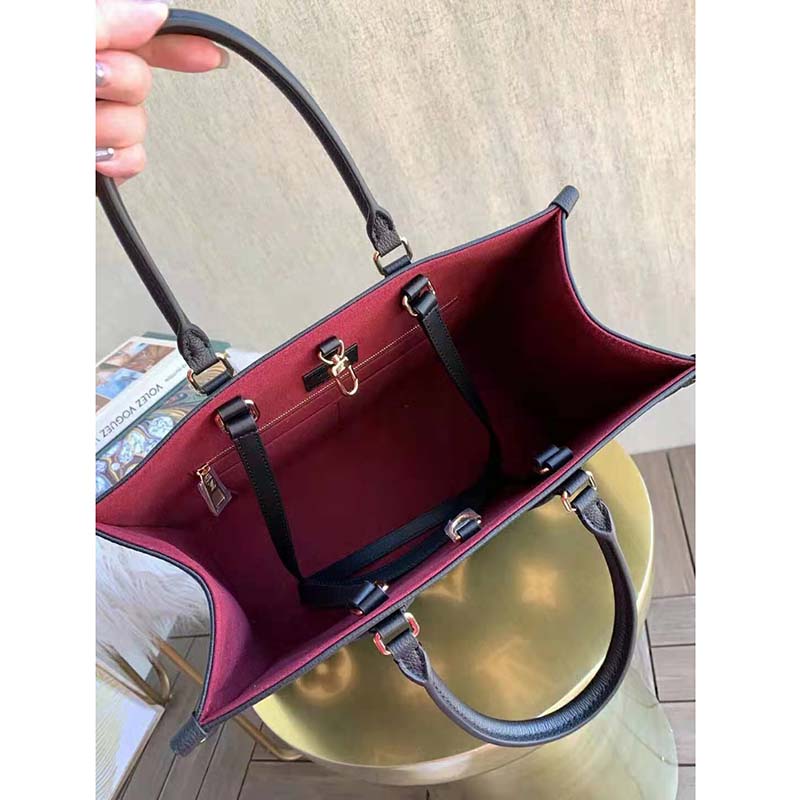 The OnTheGo MM is a medium-sized tote bag with two sets of handles, long and short, for hand and shoulder carry.