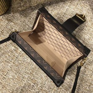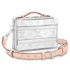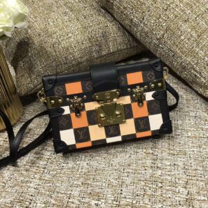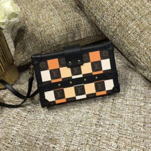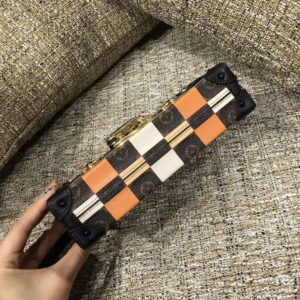 This edition of the Petite Malle handbag celebrates House heritage: Monogram canvas is interwoven with strips of smooth colored leather, for an original take on the signature Damier pattern.