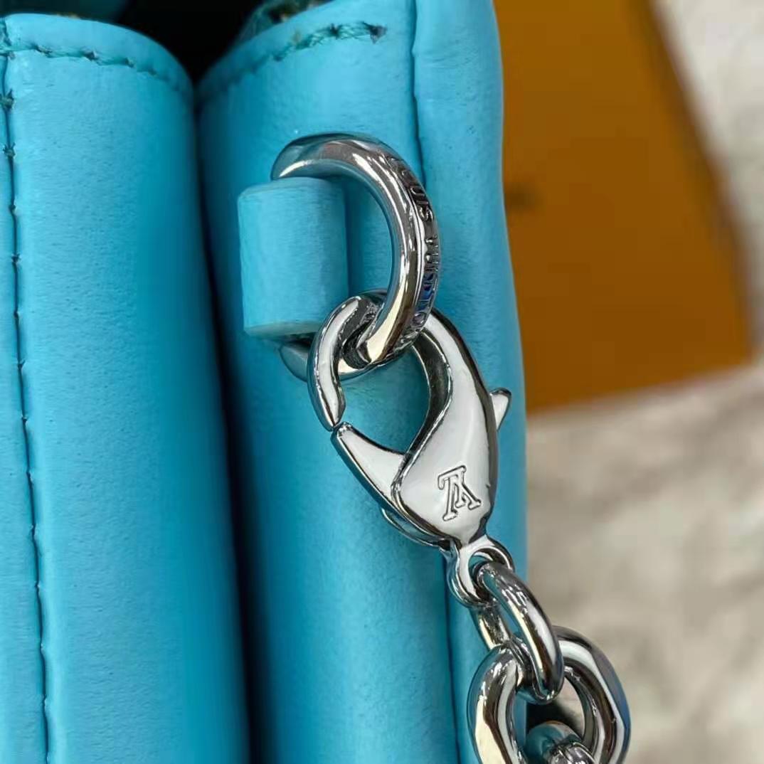 The removable chain, decorated with a Louis Vuitton charm, offers different carry options: clutch, shoulder or belt.