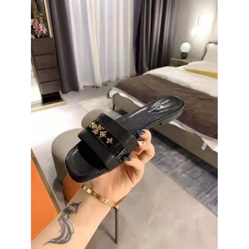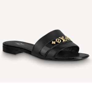 Elegant yet easy to wear, the Revival flat mule features a wide front strap in soft black calf leather with tonal glazed calf-leather trim.