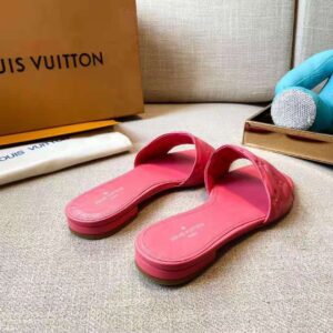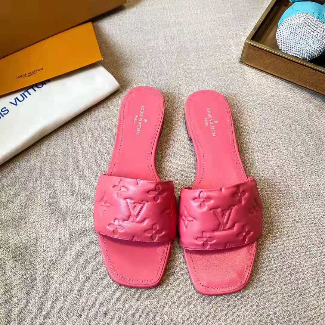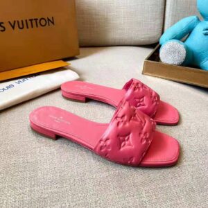 Exceptionally supple lamb leather is discreetly embossed with the iconic Monogram pattern on the Revival flat mule, which is characterized by its padded front strap and modern square toe. This feminine style also has a padded insole for enhanced comfort and is finished with a colored leather outsole.