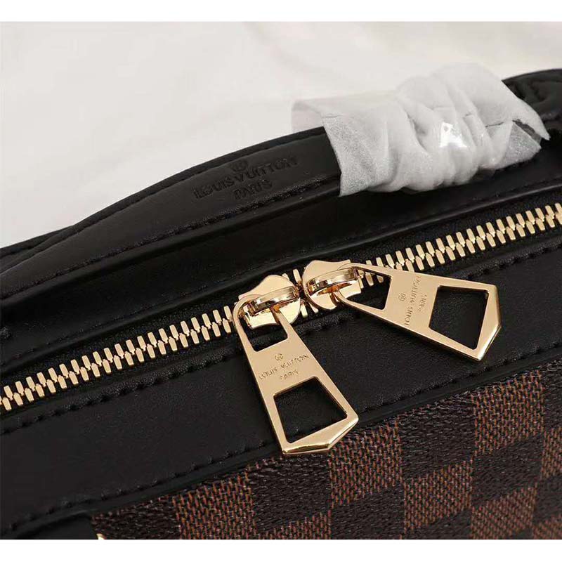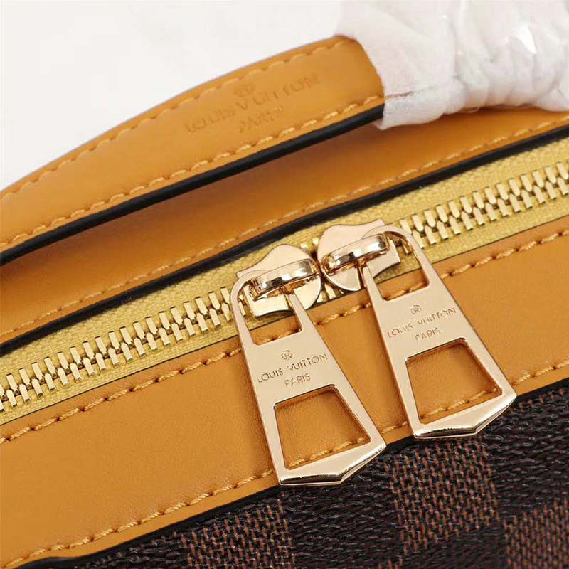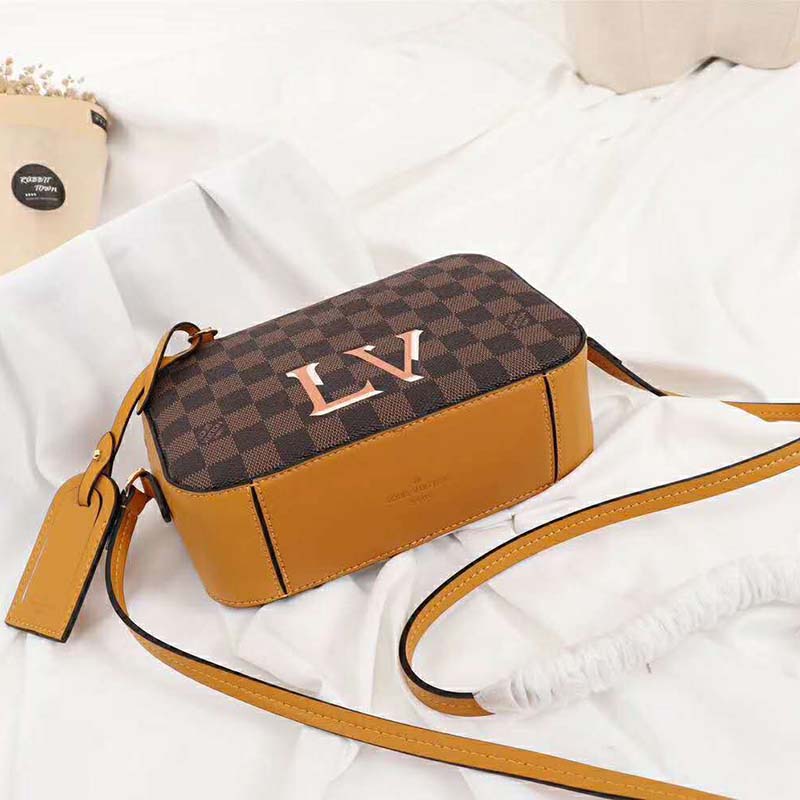 This new version of the compact, casual-chic Santa Monica bag combines Louis Vuitton’s emblematic Damier Ebene canvas with smooth cowhide leather.