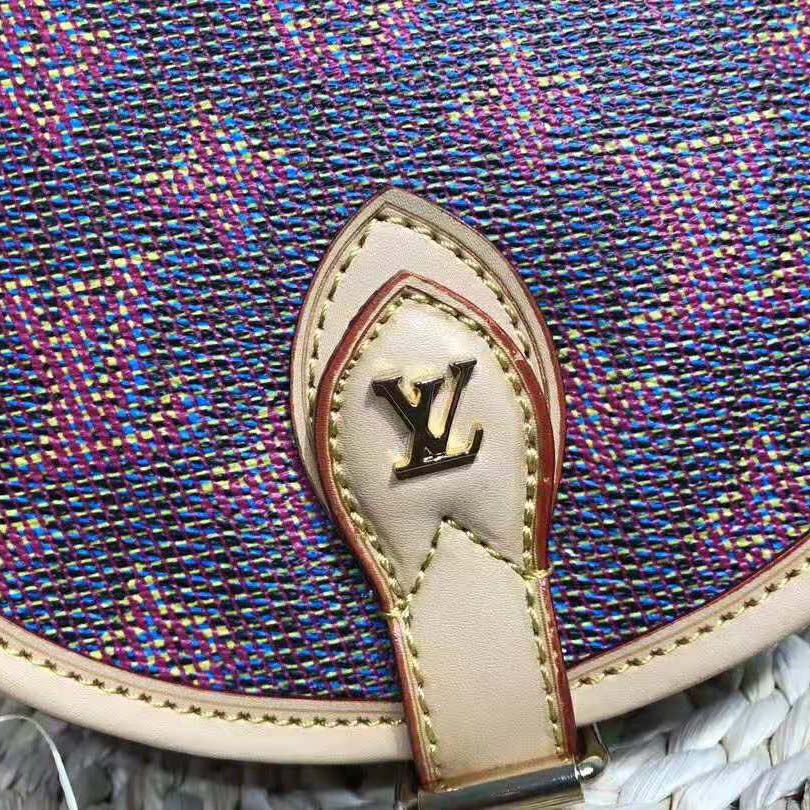 That combines the Monogram and Damier motifs in a single neon pattern.