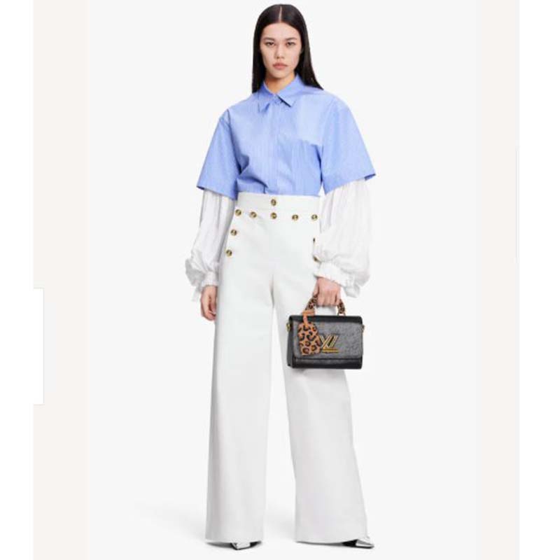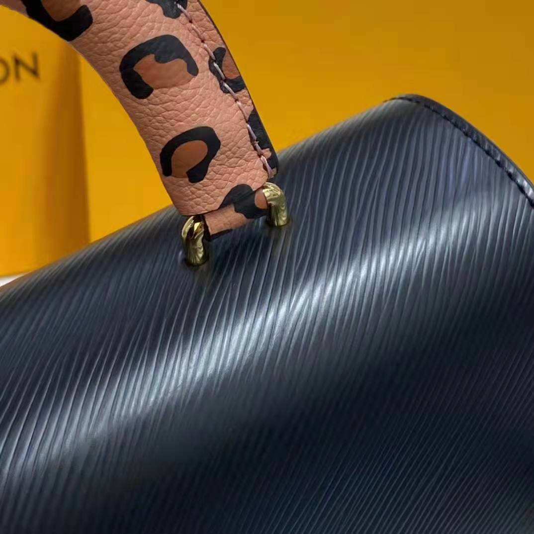The Fall 2021 Wild at Heart capsule brings an untamed touch to the Twist MM handbag. Fashioned from the House’s emblematic Epi grained leather, this fashionable piece is finished with a luggage-style handle and name tag in a playful leopard print.