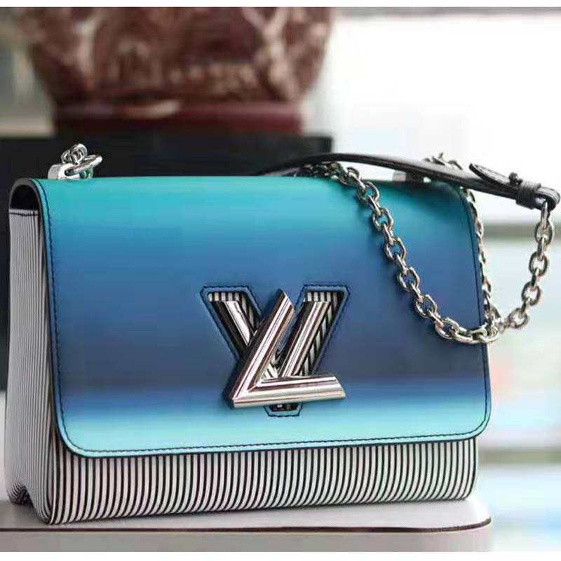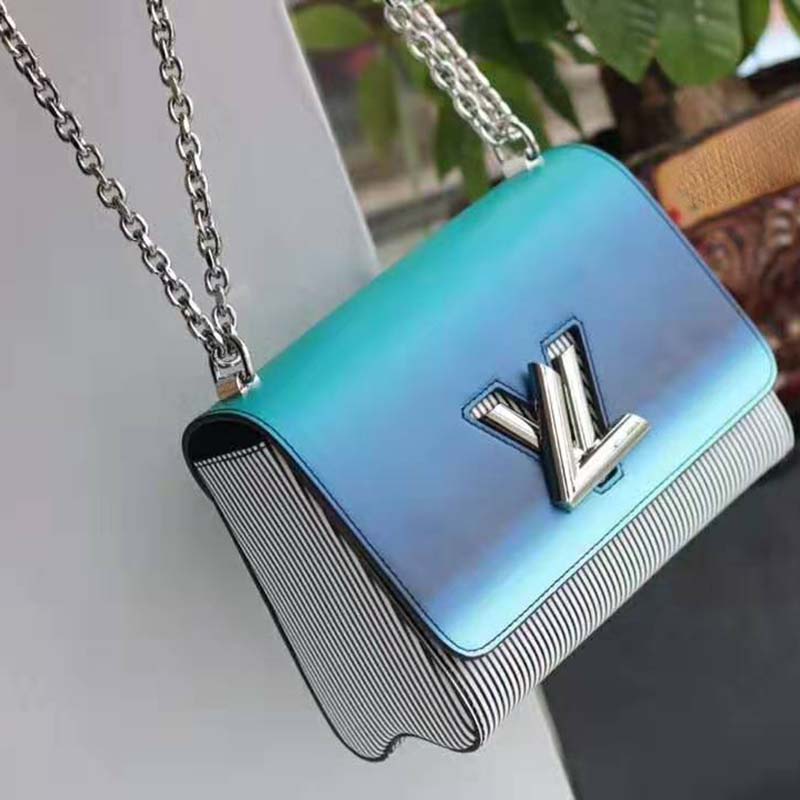 For Spring-Summer 2019 Nicolas Ghesquière dresses his New Classic Twist bag in radiant blues and pop-inspired stripes.