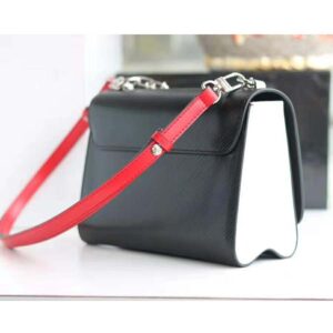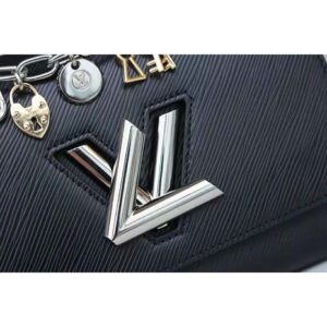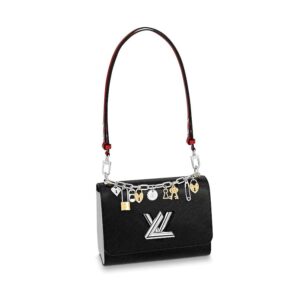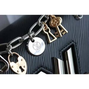 Crafted from black Epi leather, the Twist MM LV Love Lock Charms handbag is embellished with a removable ornemental chain hung with locks, keys and other charms in silver and gold-tone metal.